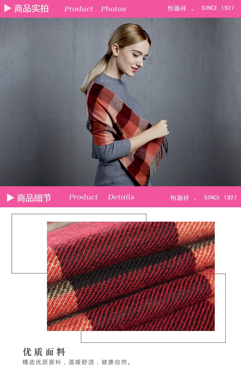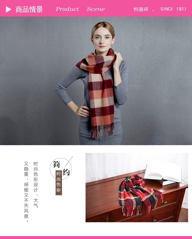 恒源祥礼业HYX1004红黑小格子围巾 红色 30*170