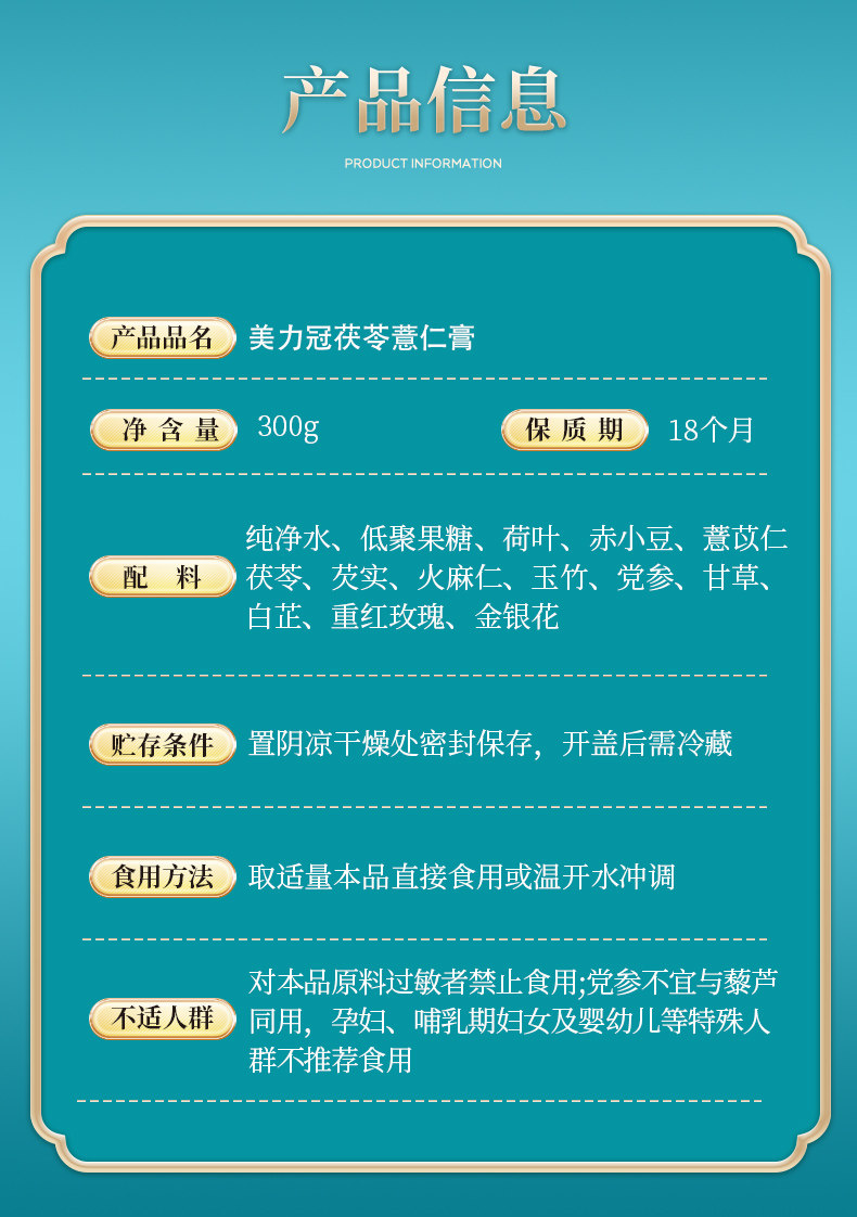 美力冠玉竹饮美力冠茯苓膏官方正品 美力冠茯苓薏仁膏 茯苓薏仁