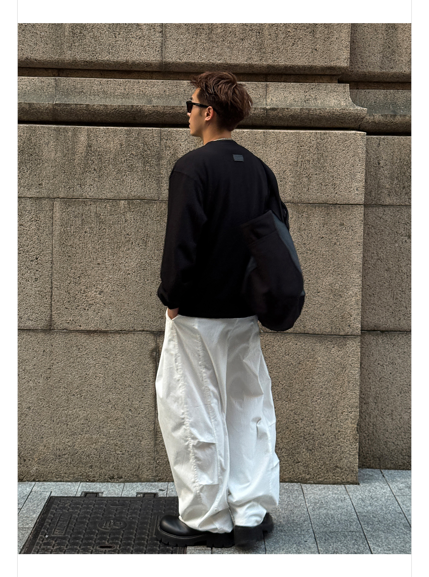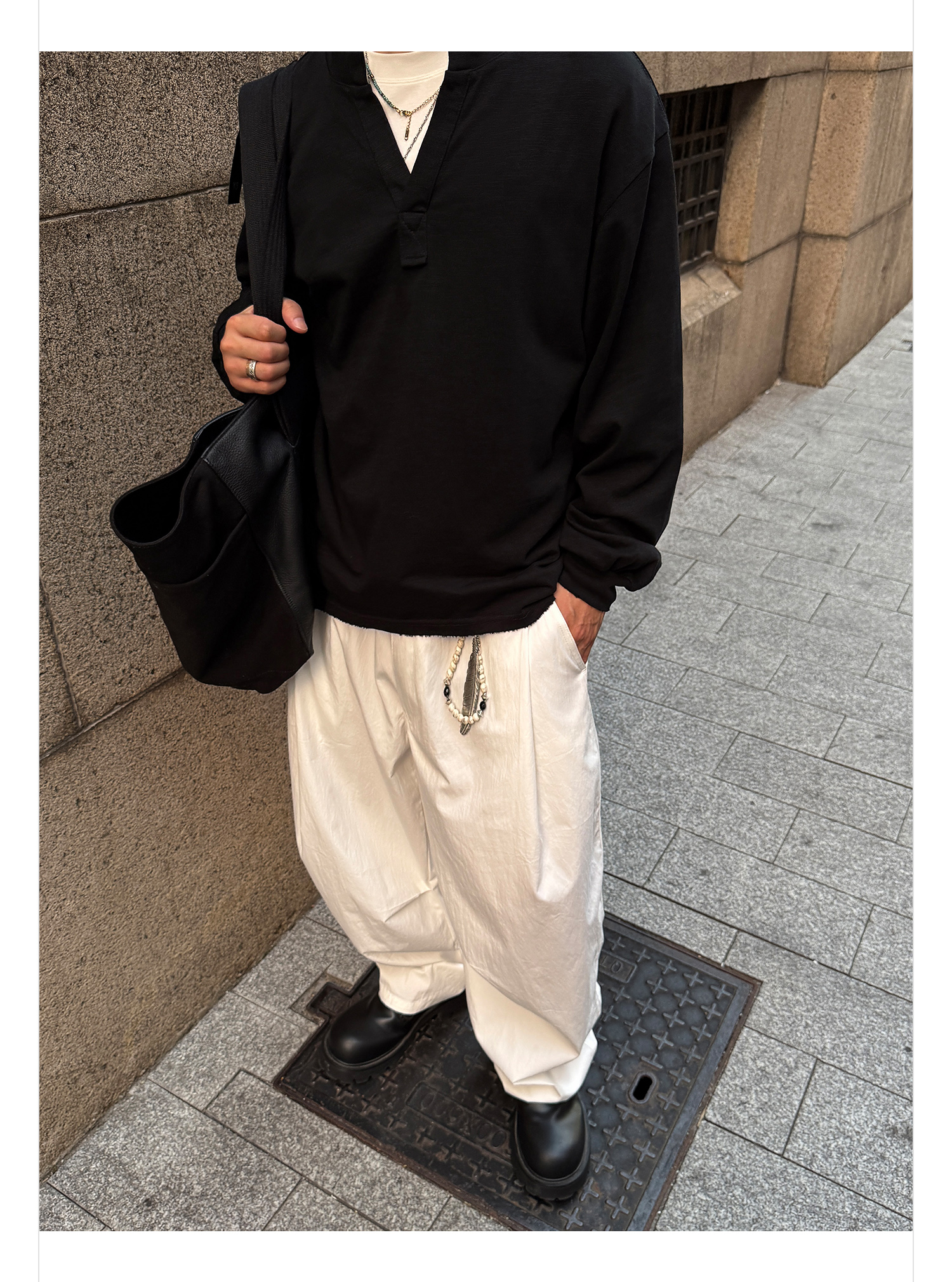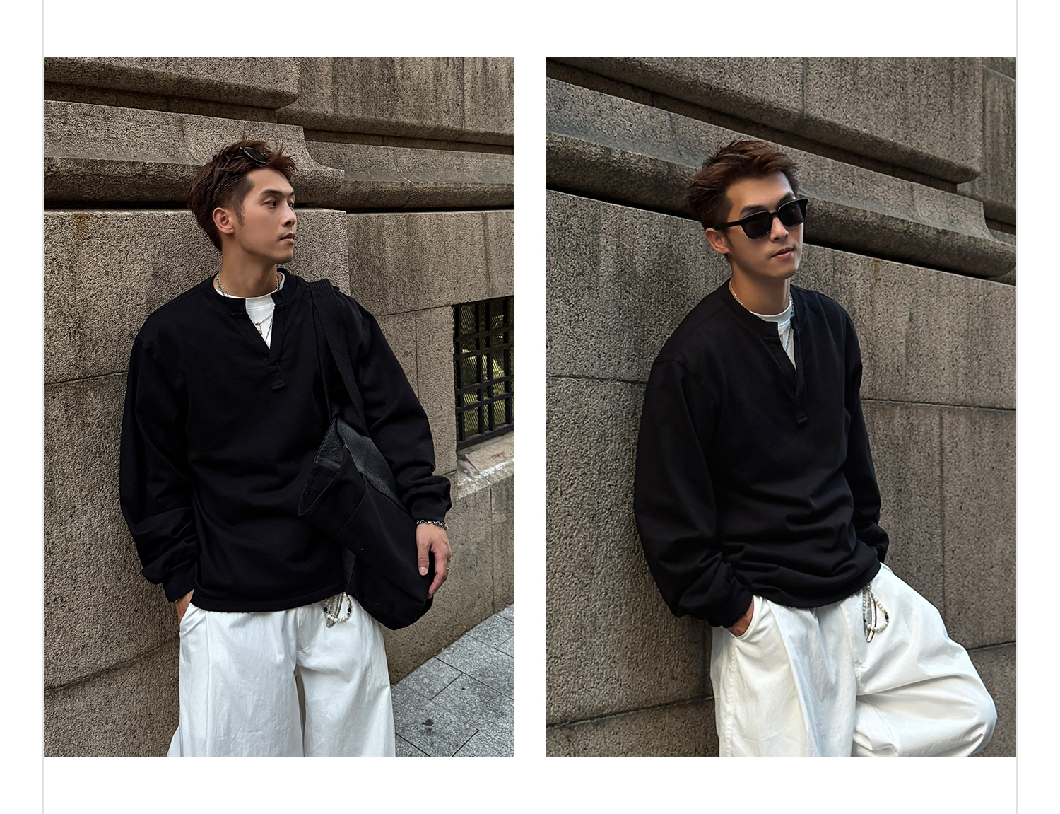 徐太浪【cleanfit 极简纯棉】黑色V领长袖T恤男春秋打底内搭上衣