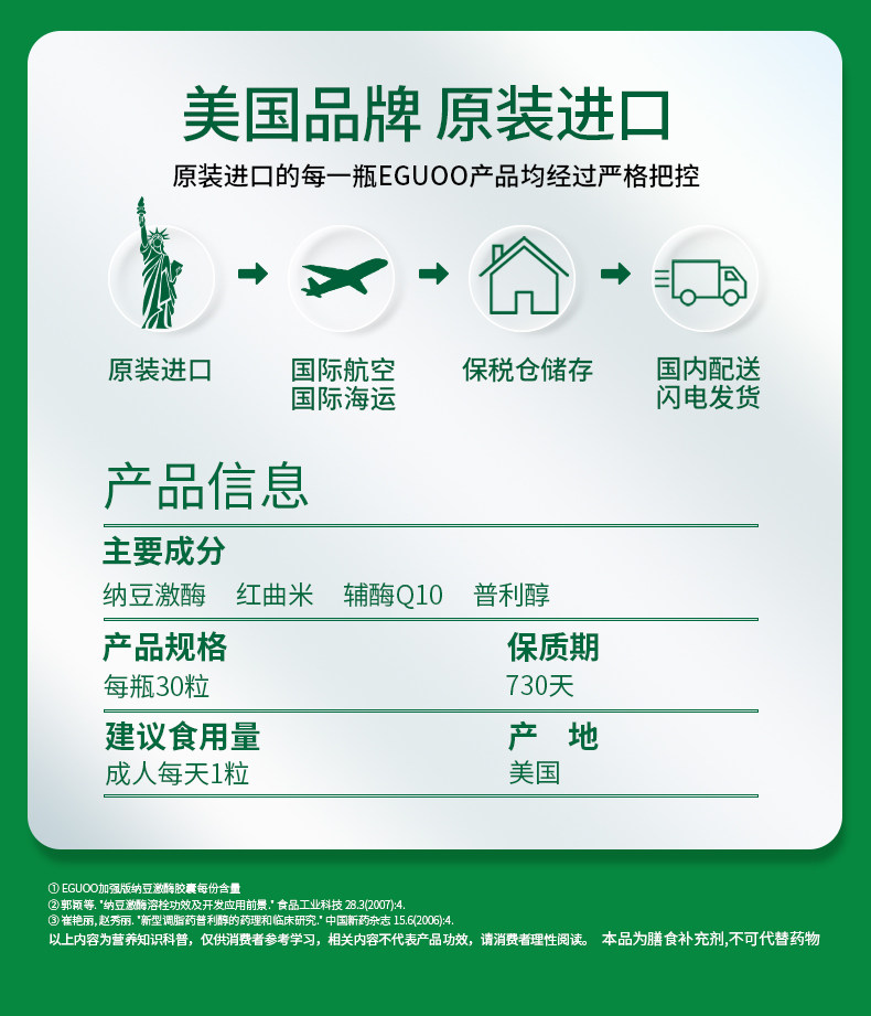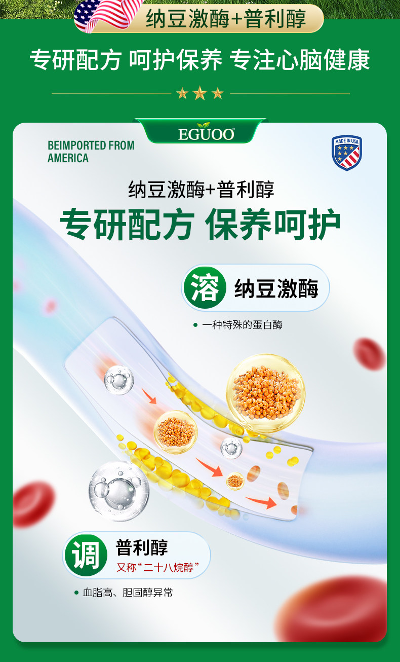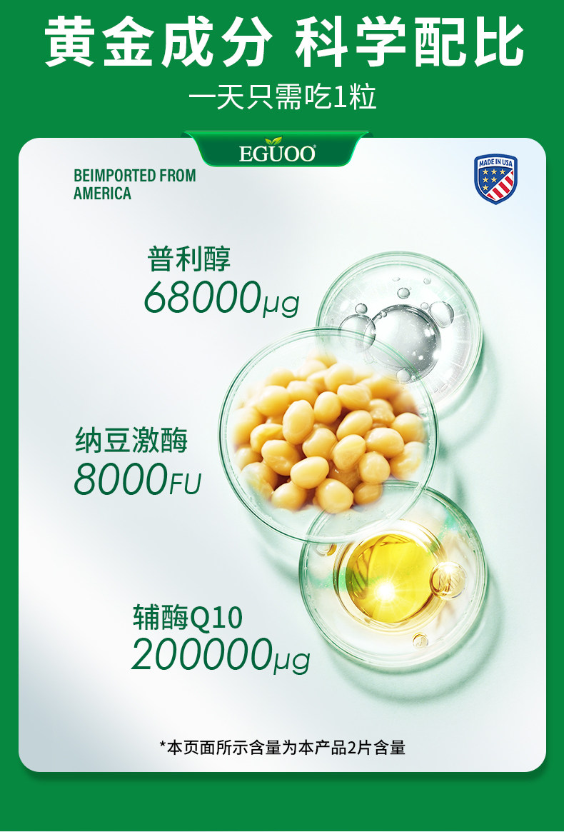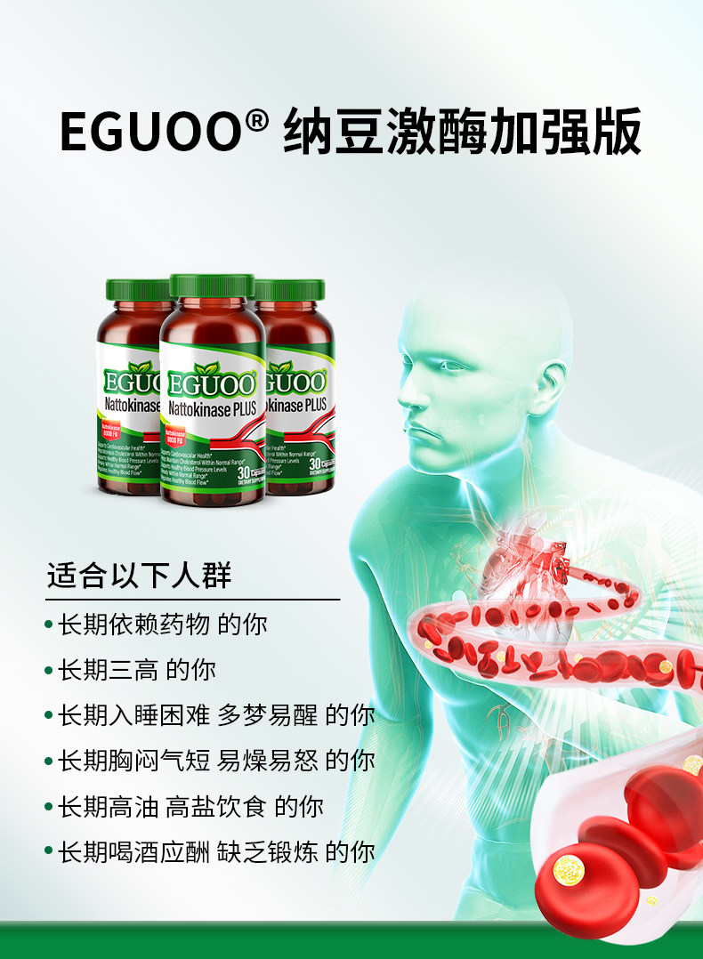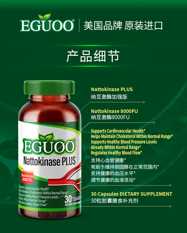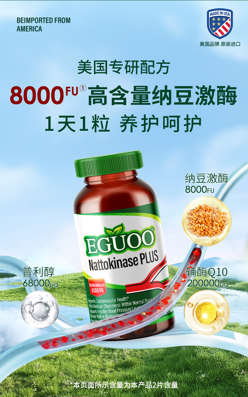 美国原装进口正品EGUOO纳豆激酶胶囊8000FU呵护中老年人心脑血管