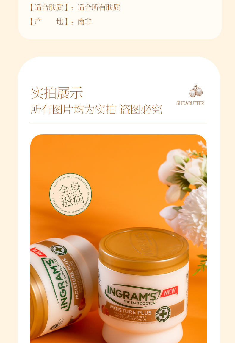 【南非国宝品牌】INGRAM'S:英格莱恩乳木果维他命E保温和滋润补水清爽不油腻·450ml