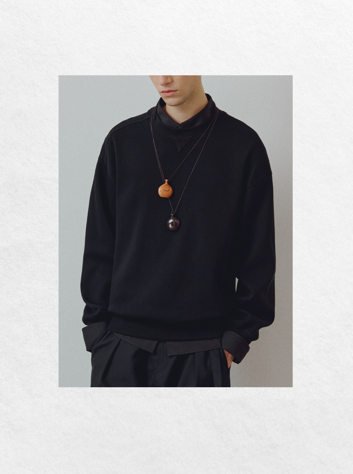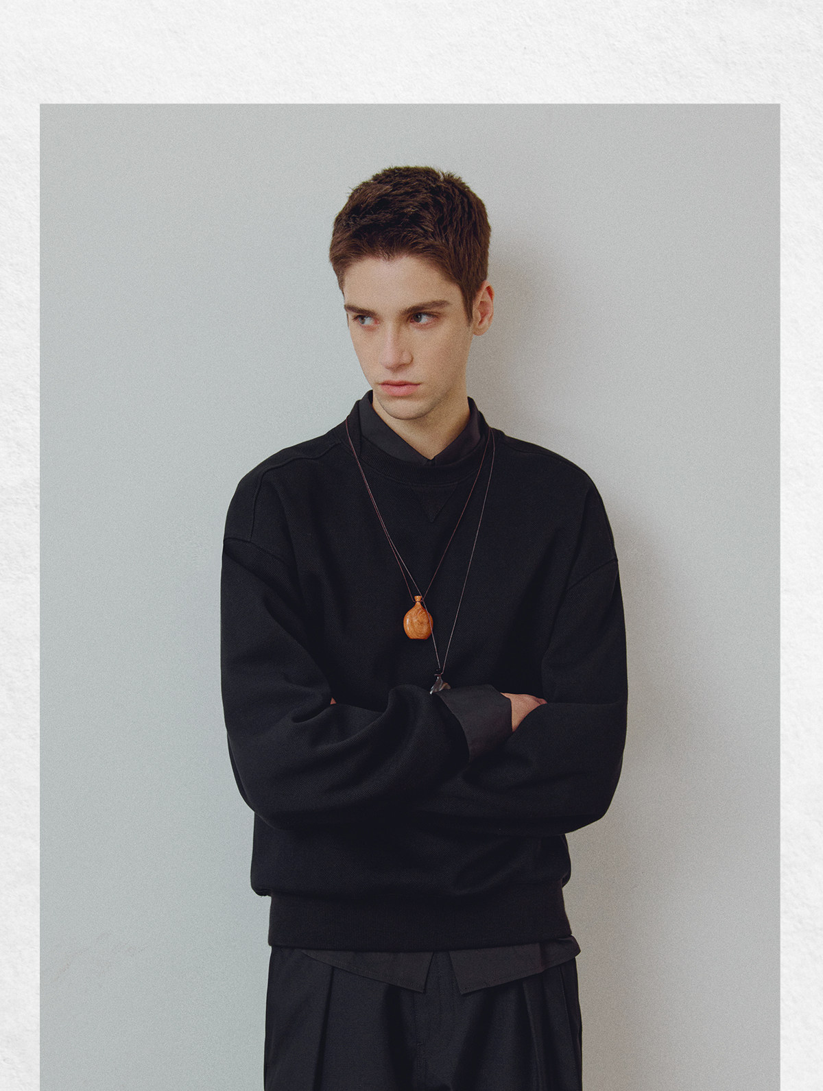 714street高端线BEHALF 交叉领 立体蜂窝肌理混纺棉 茧型短宽卫衣
