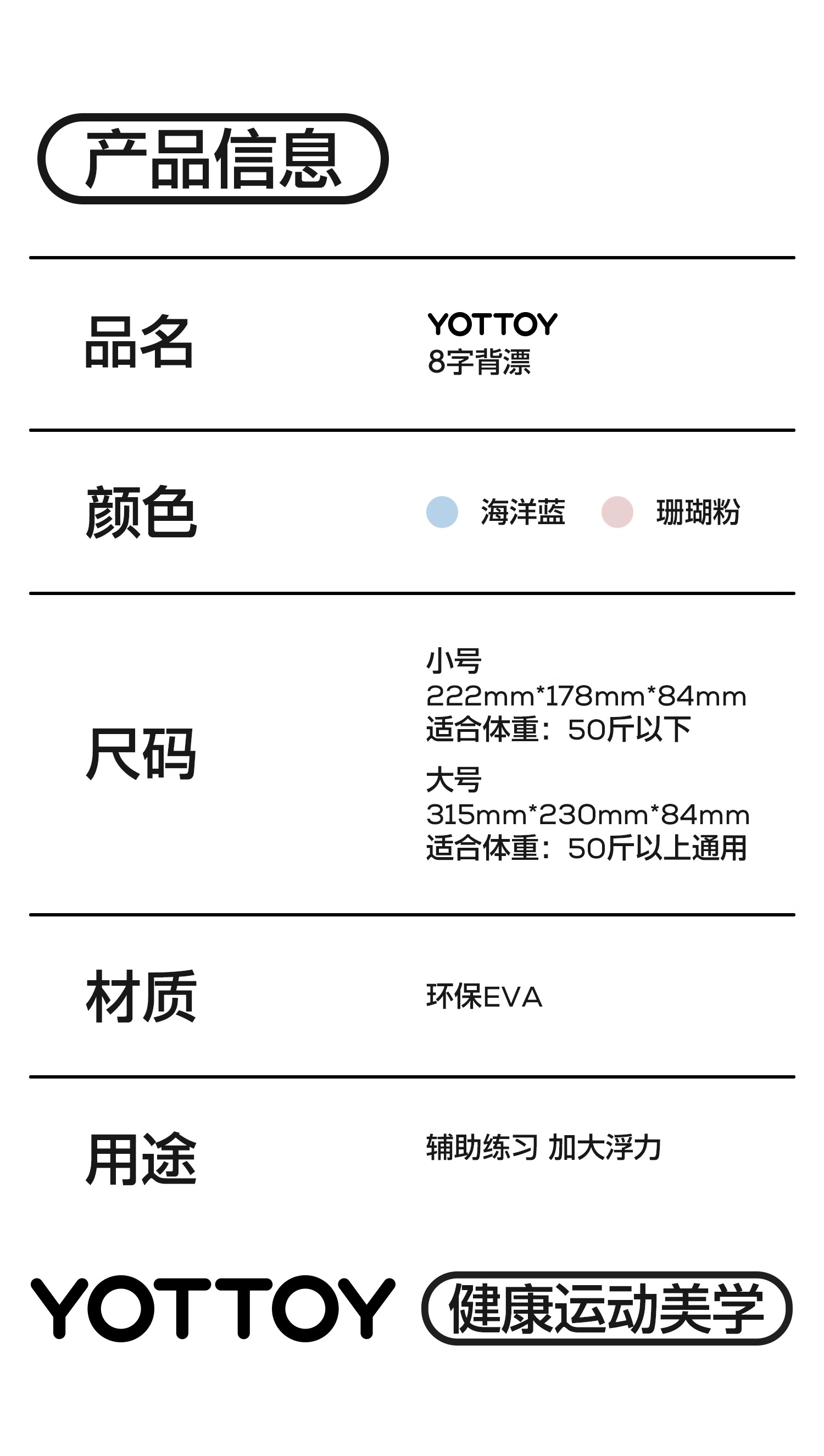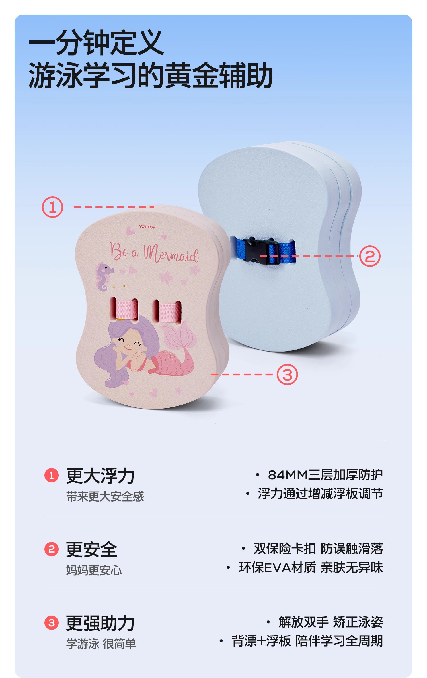 游泳浮板【YOTYTOY】儿童游泳浮板背漂初学者游泳训练神器成人专业大浮力游泳背板装备