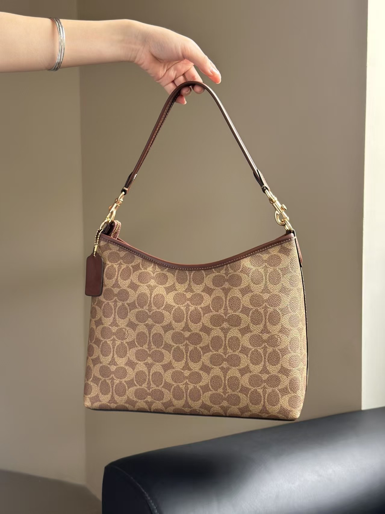 蔻驰 新款 laurel 中号 流浪包 31 焦糖色 暗纹logo(CB)