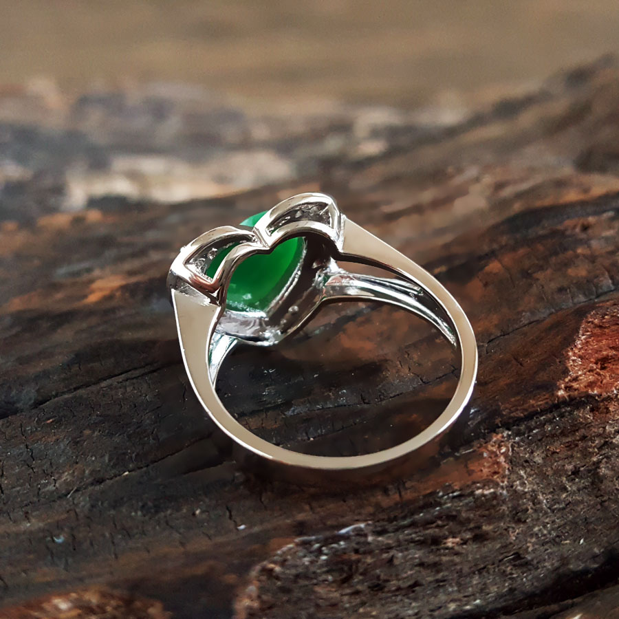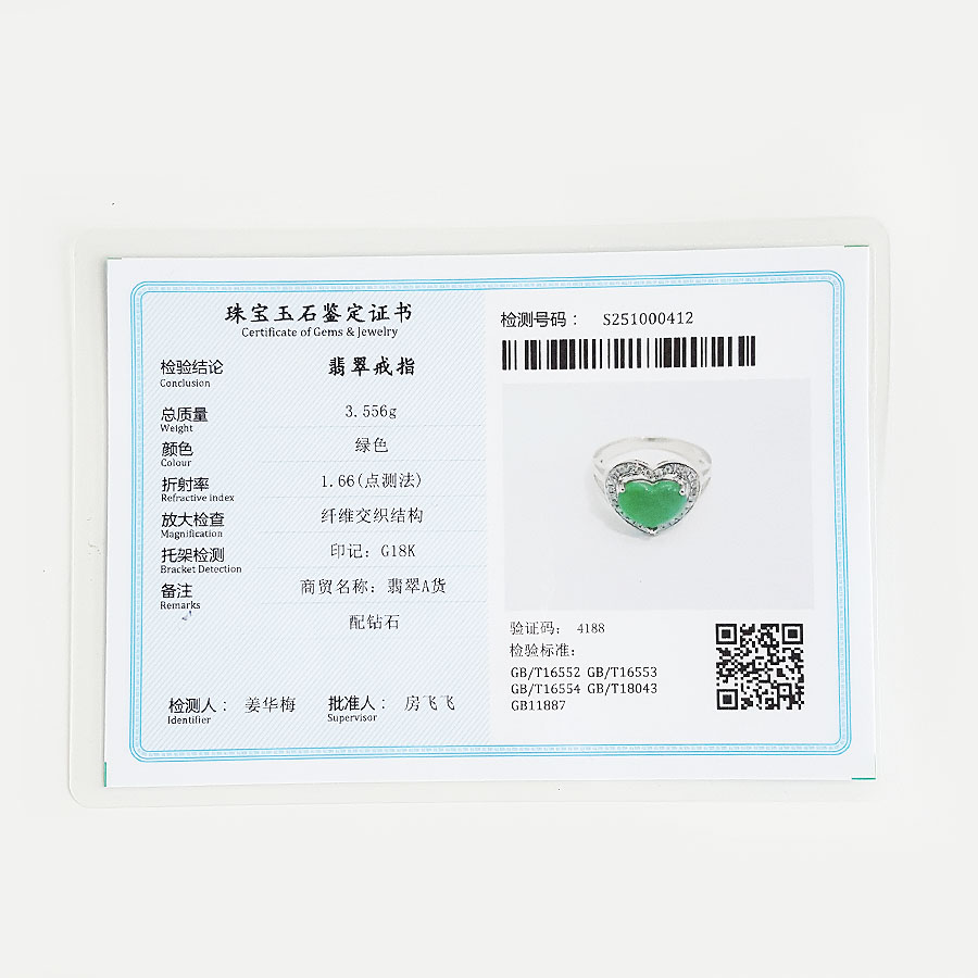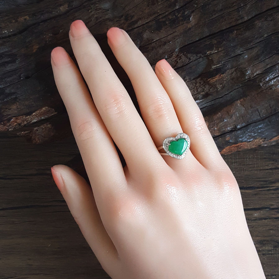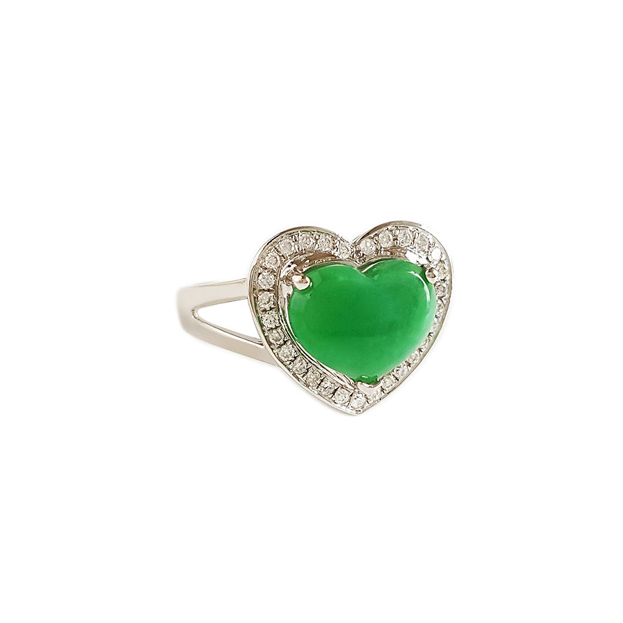 名称 | AU750白金镶钻镶天然细腻心型糯种满绿翡翠戒指 |