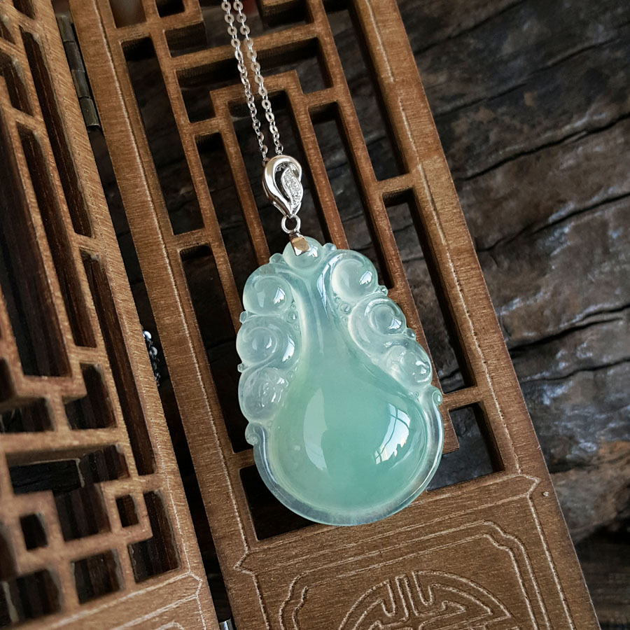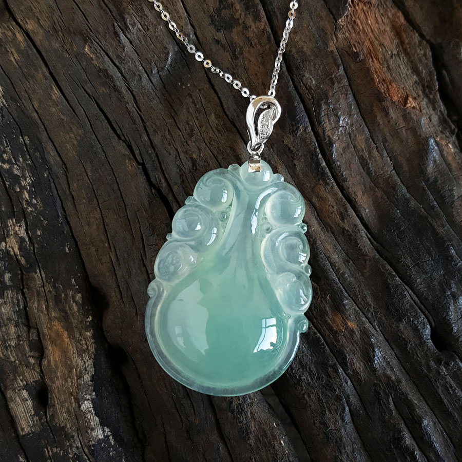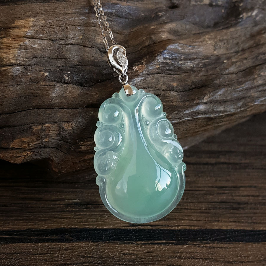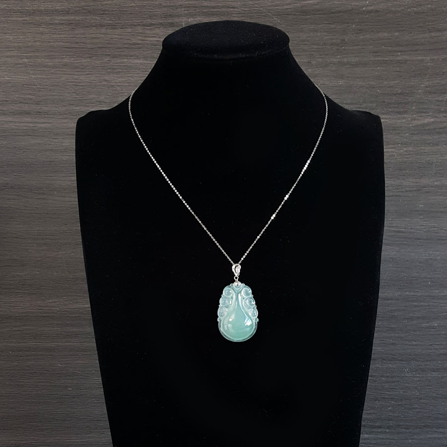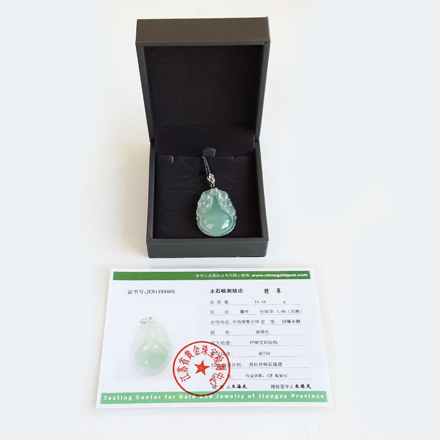名称 | AU750白金镶钻镶天然糯冰种宝瓶造型翡翠吊坠项链 |