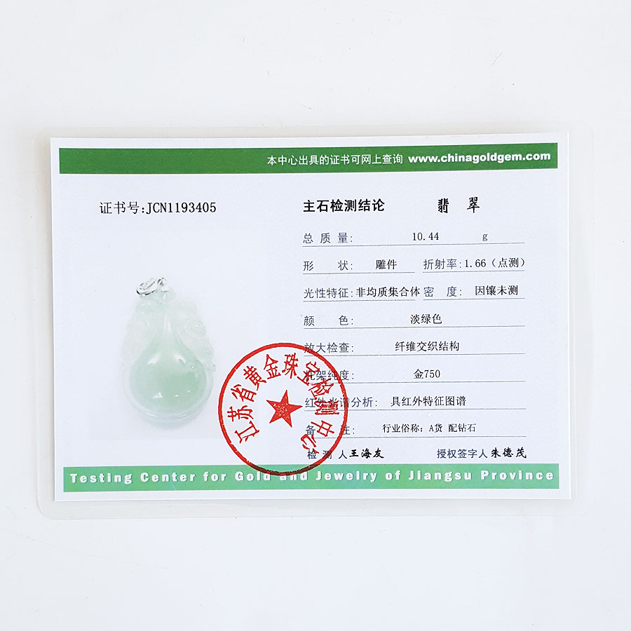【天然正品】AU750白金镶钻镶天然糯冰种宝瓶造型翡翠吊坠项链011224JJ10 现售价:10800