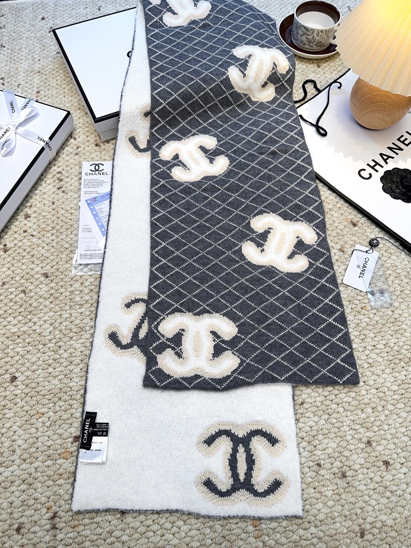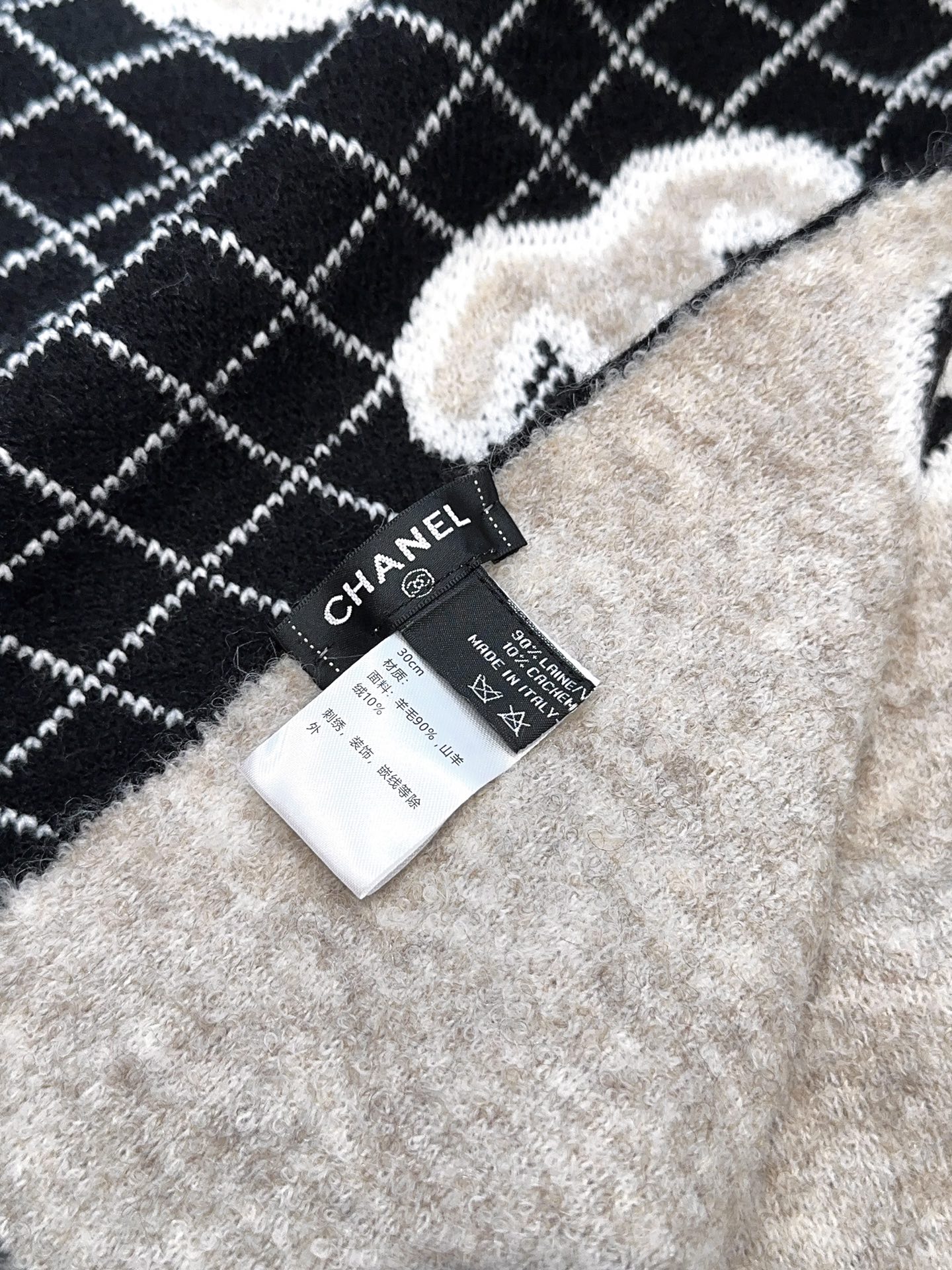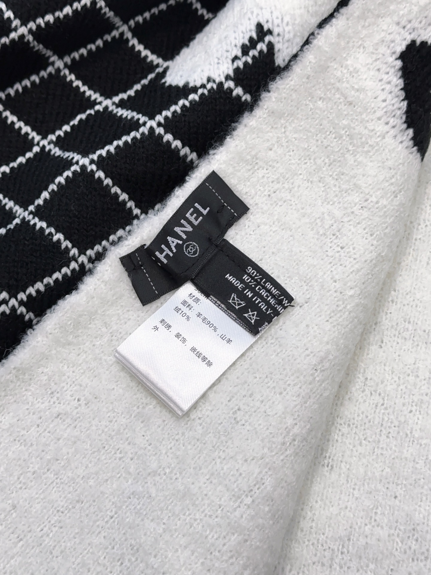 CHANEL(香奈儿)🆕菱格纹羊毛围巾 高级定制面料 一比一还原 软软糯糯棉花糖一样的手感 厚实又保暖 加上双面黑白混搭配色的设计 高级感满满的 小香家这款菱格纹羊毛围巾真的是经典中的经典!规格35:190!材质90%羊毛 10%羊绒