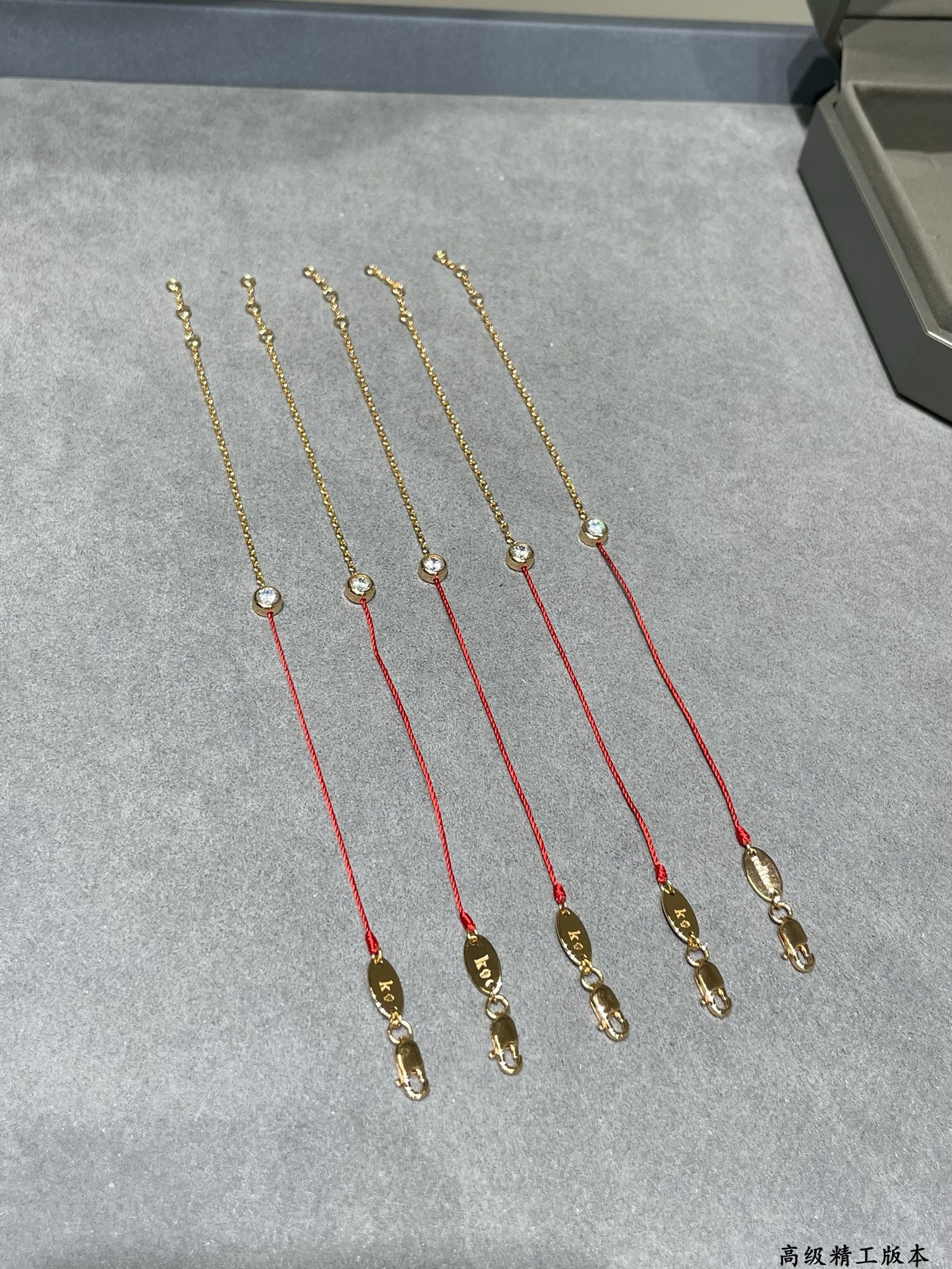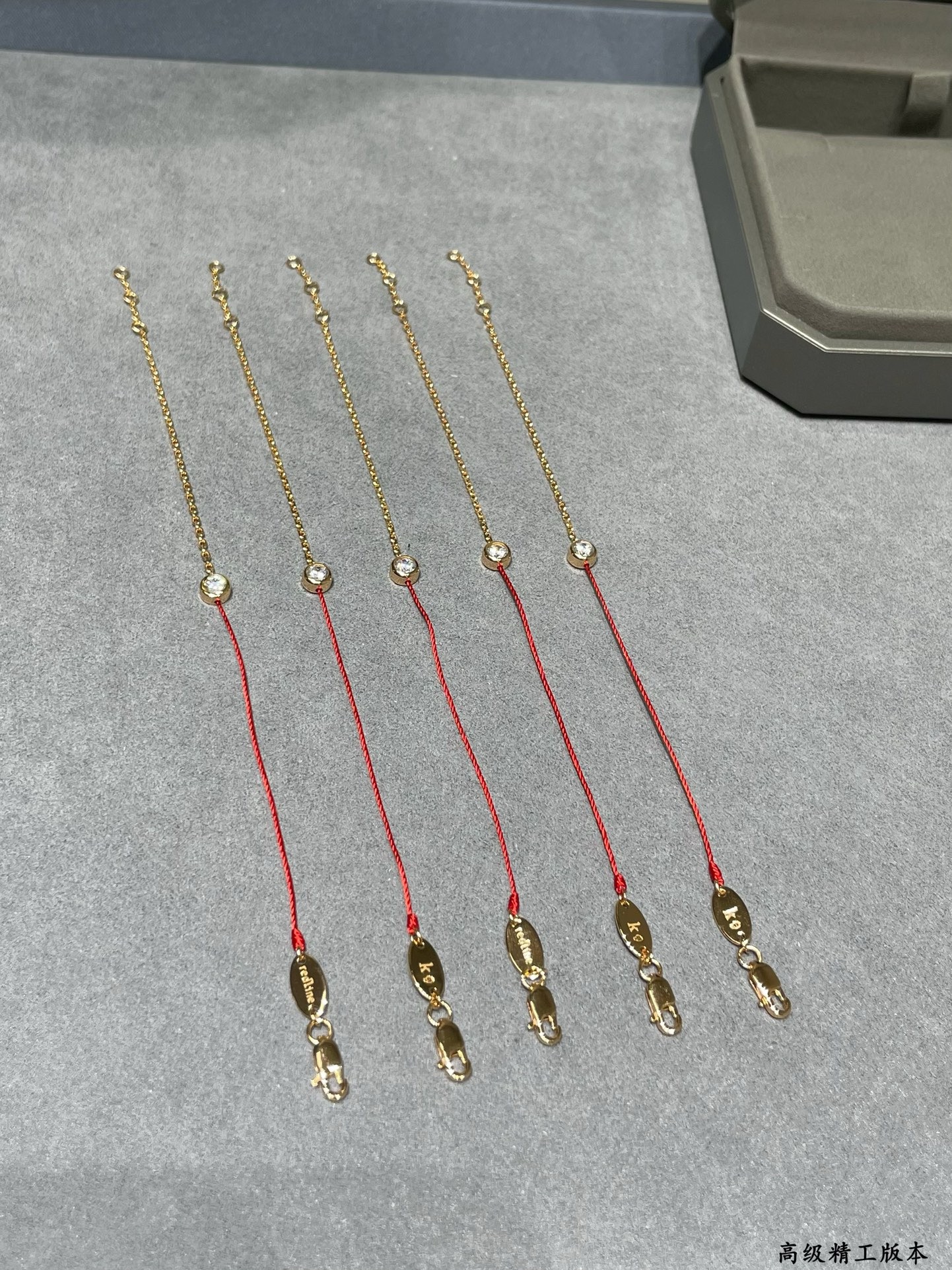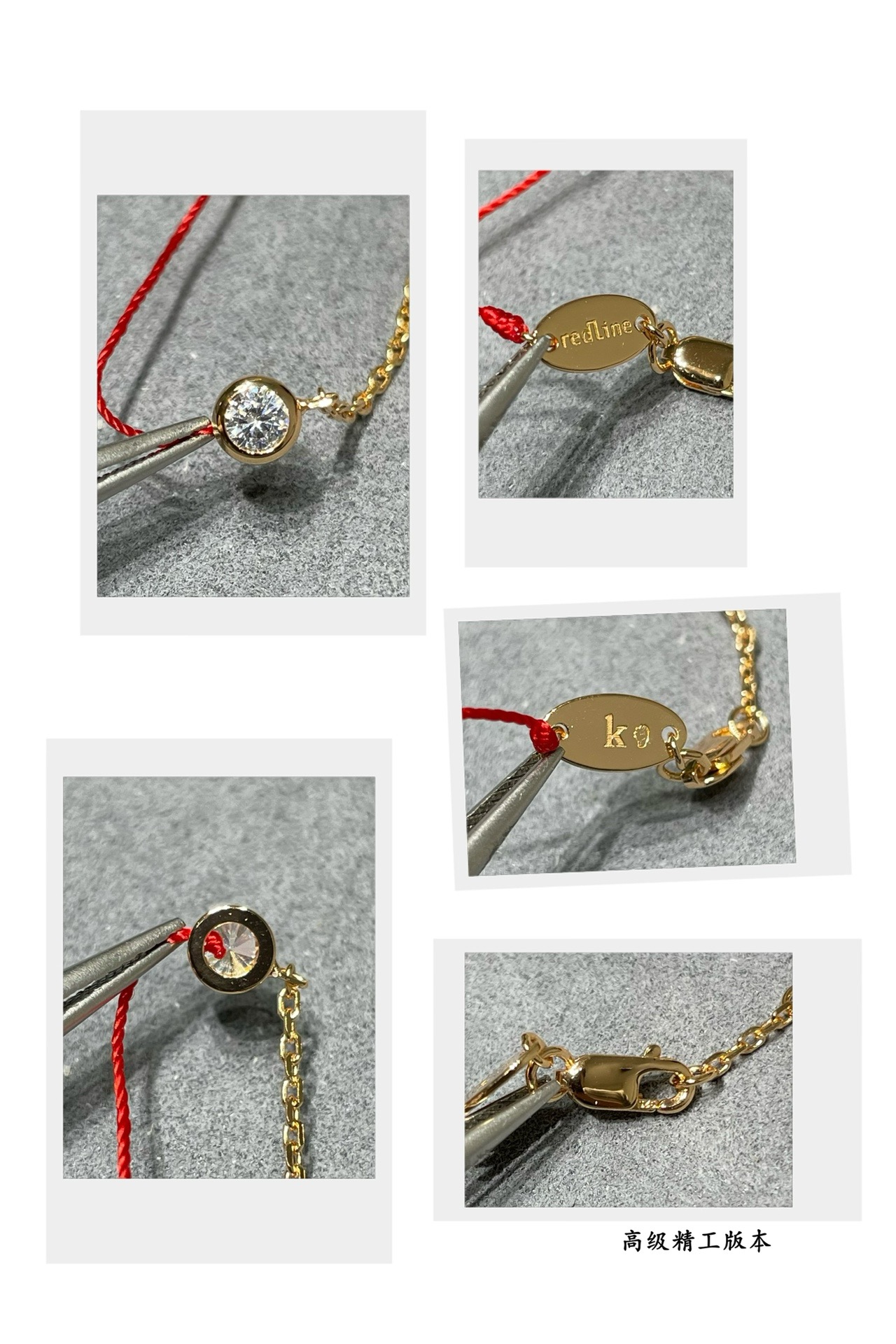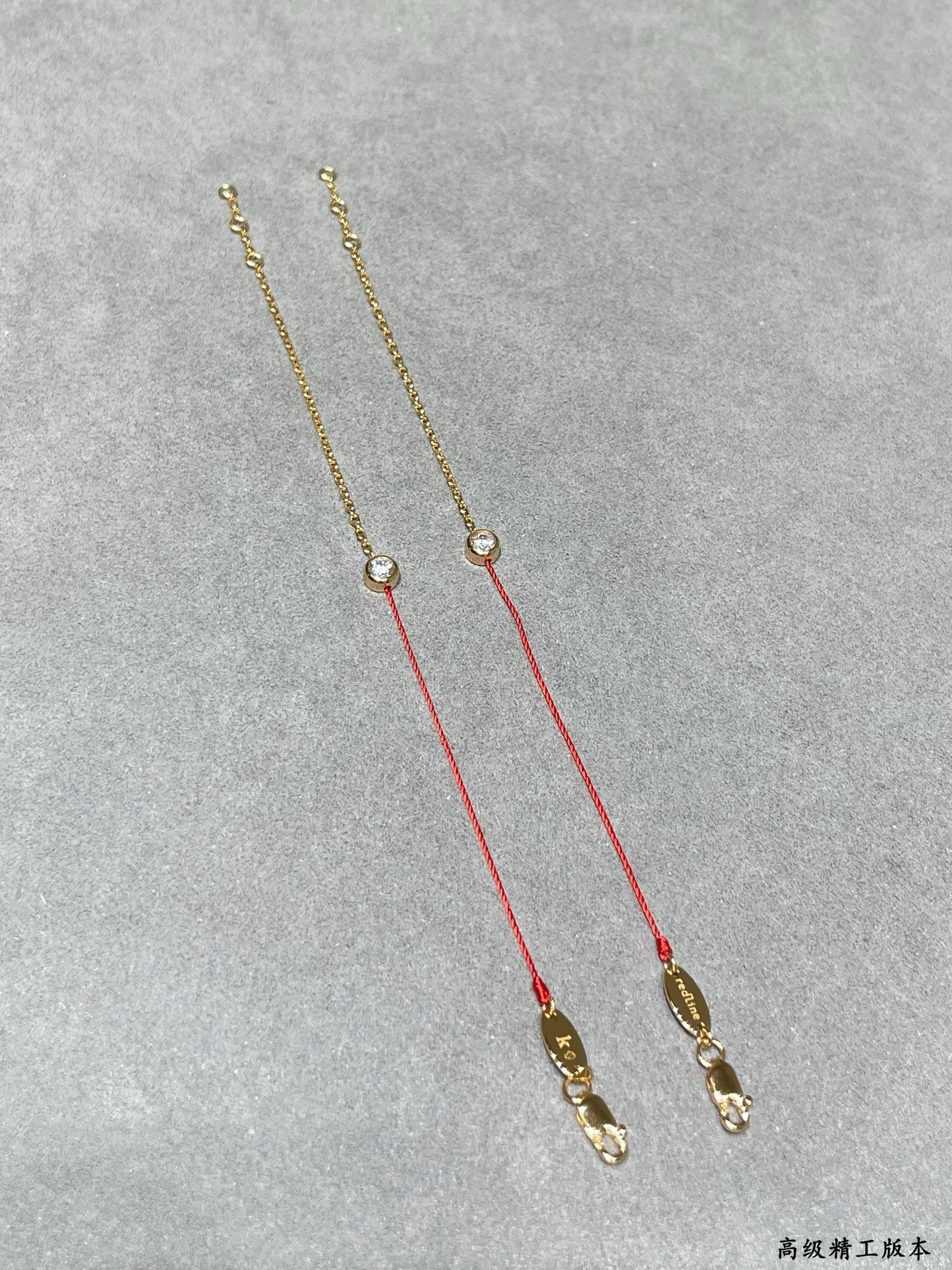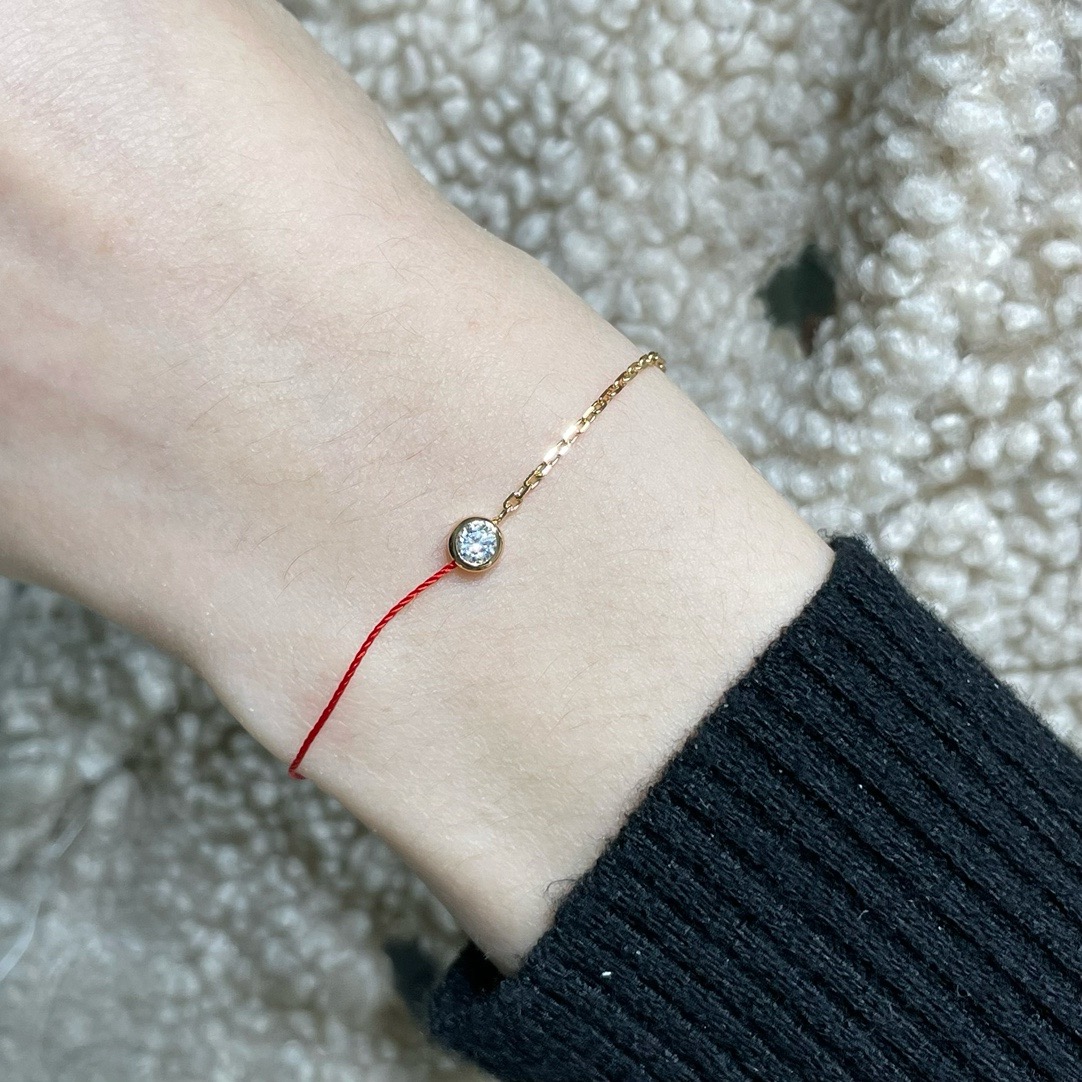 CNC对版,V金材质。颜色:玫瑰金。精雕厚金电镀,Redline小单钻红绳手链,超级百搭,各种搭配都特别好看,小件红绳也是无比精致。红绳代表幸运,18k金链代表财富,钻石💎恒永久代表爱情💓。好货请珍惜。