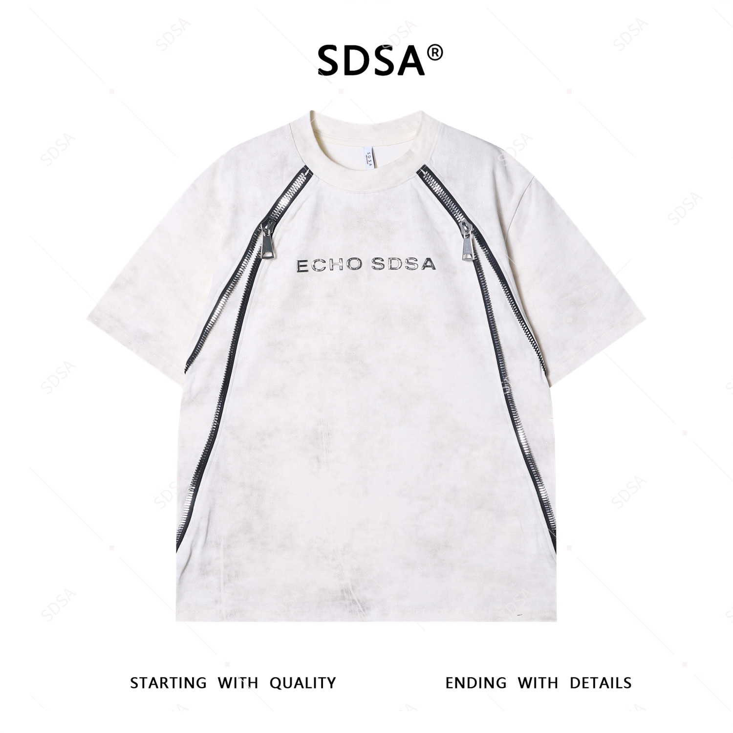 T3596夏季高级感新款男士痞帅立体字母拉链圆领短袖T恤百搭潮流上衣