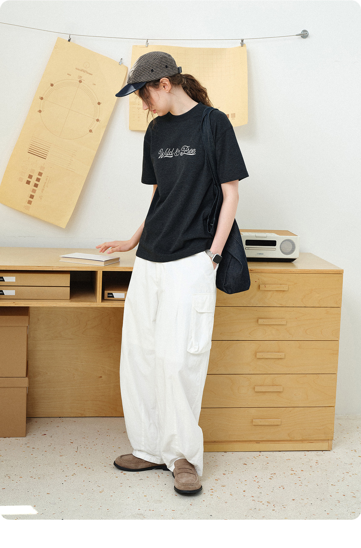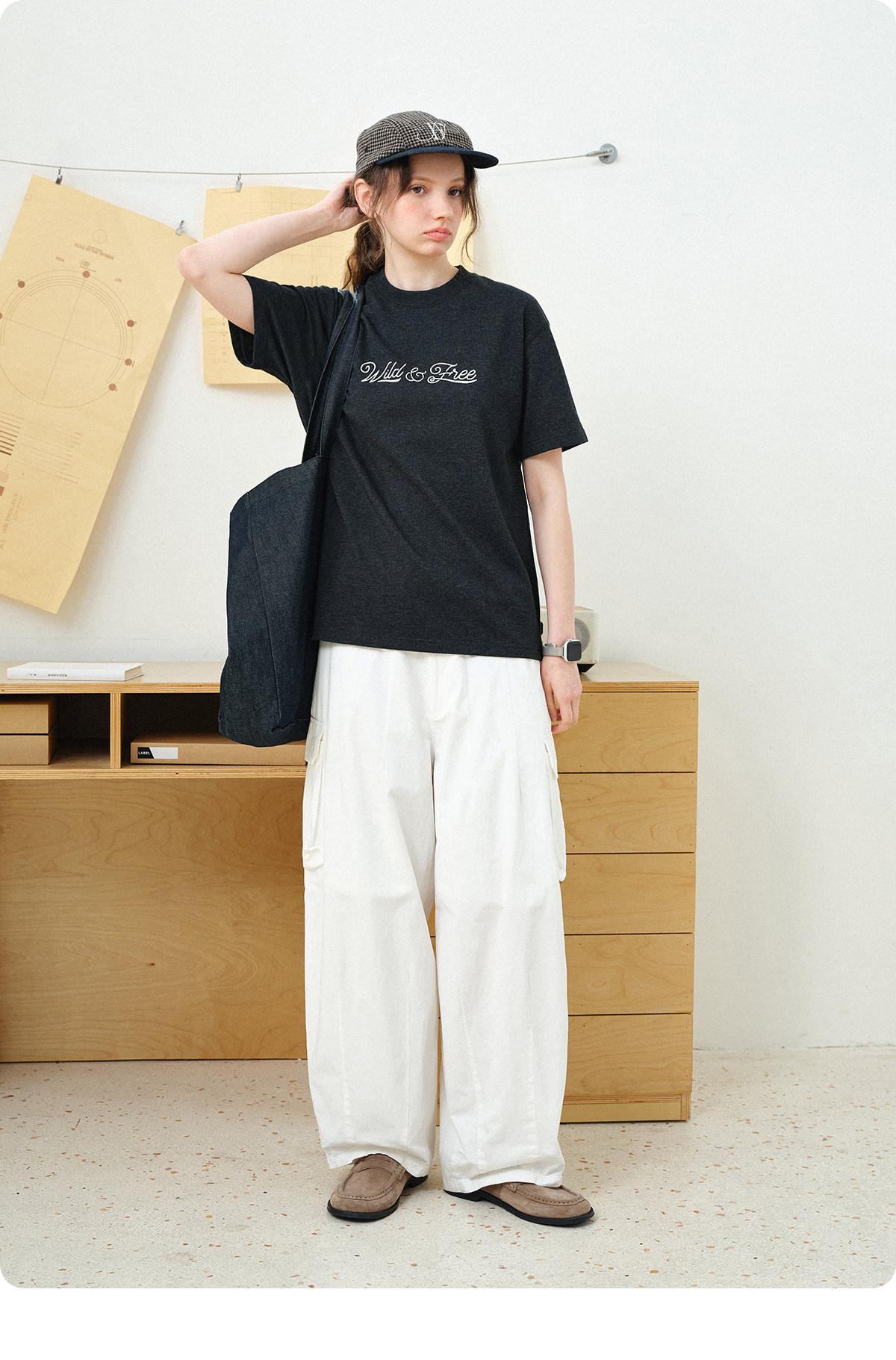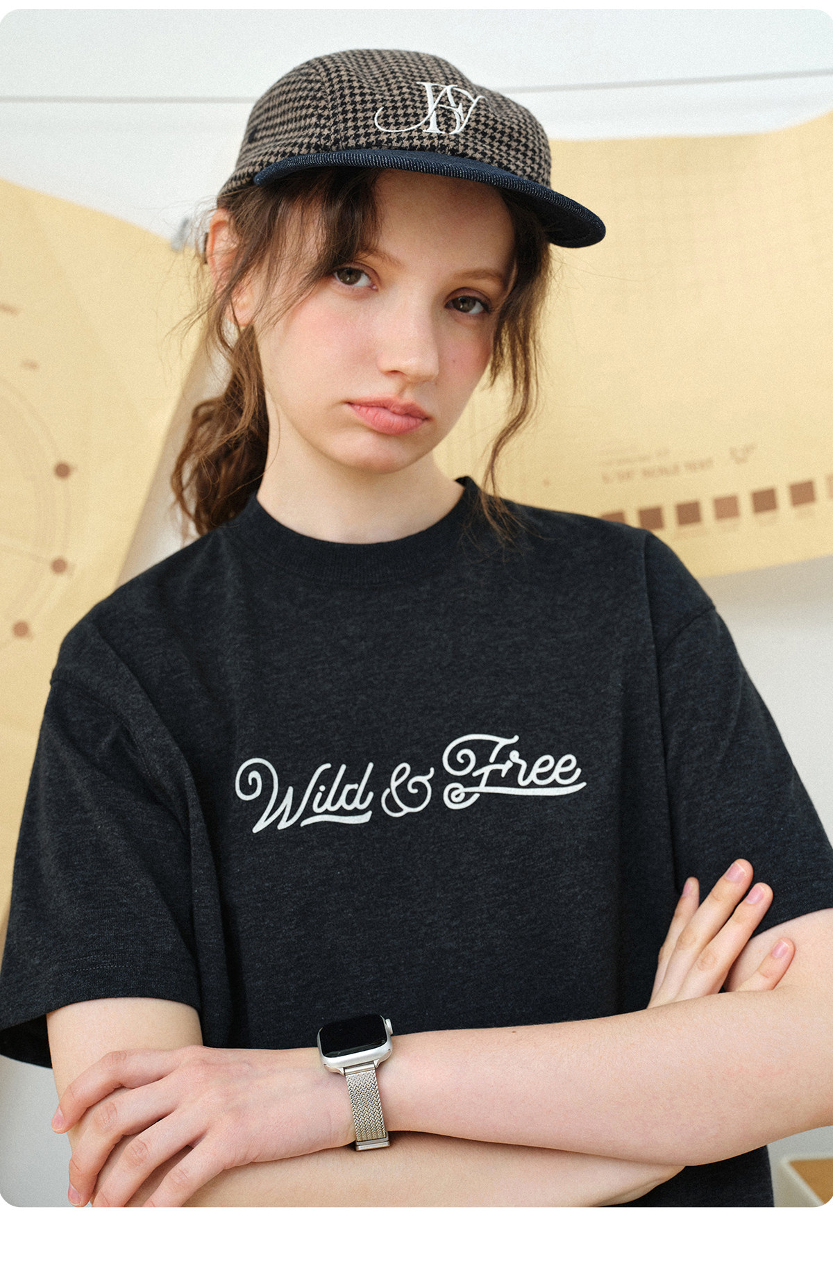 714street轻薄小猫一字肩长袖罩衫2026春夏雪花肌理宽松斜肩T恤女