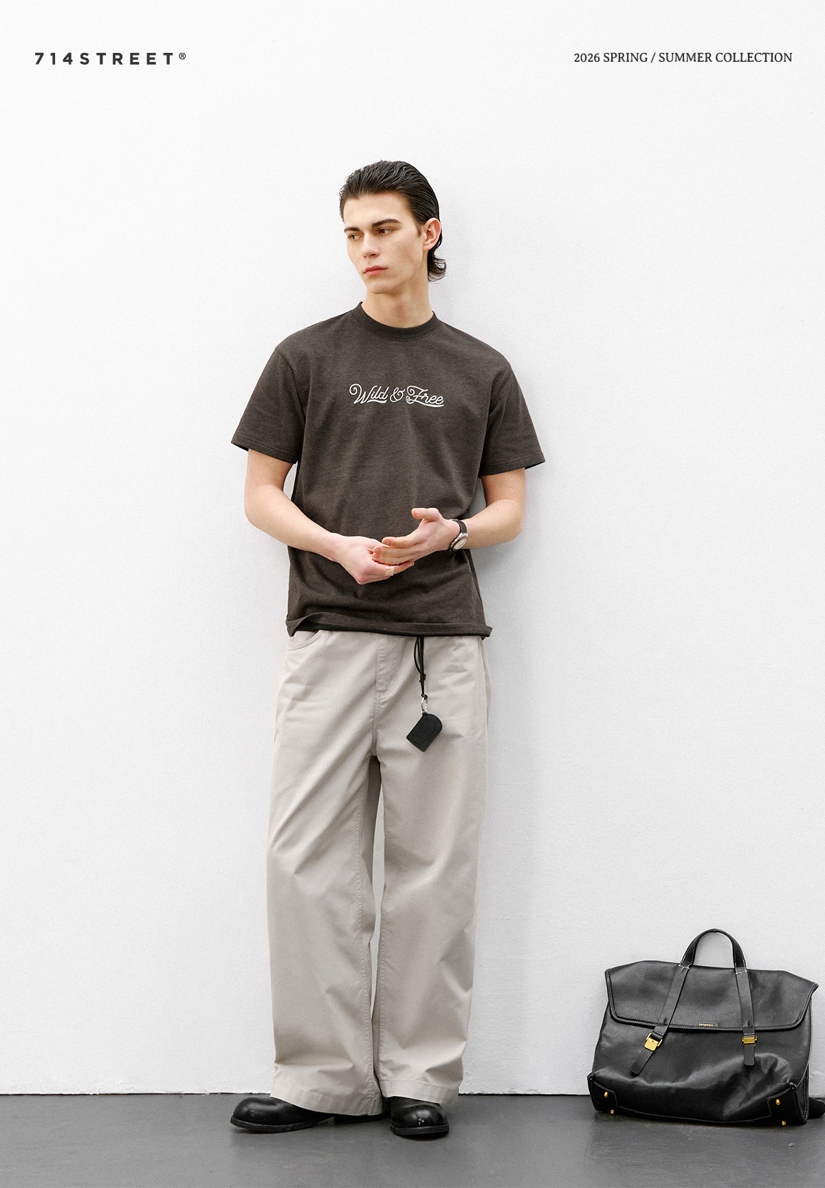 714street复古质感花纱面料短袖2026夏季短宽版型老钱风情侣T恤男