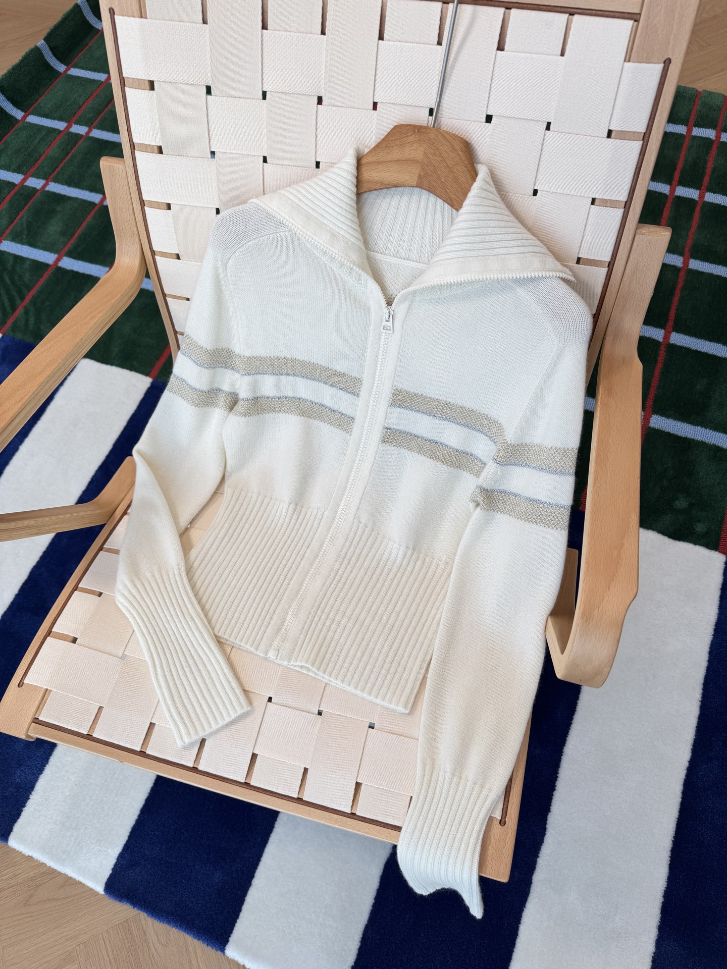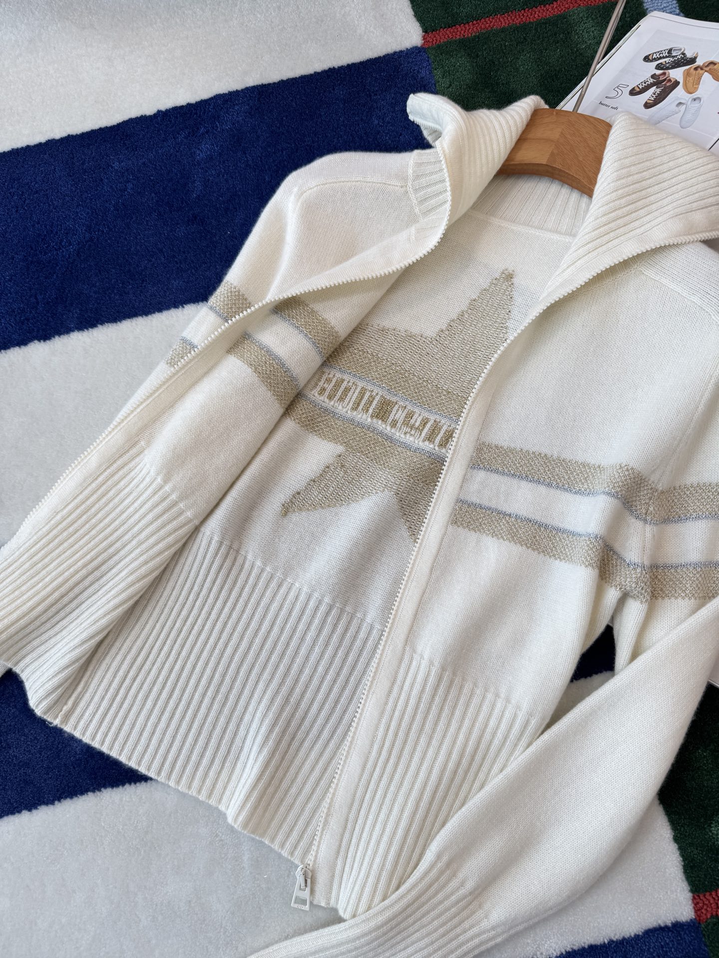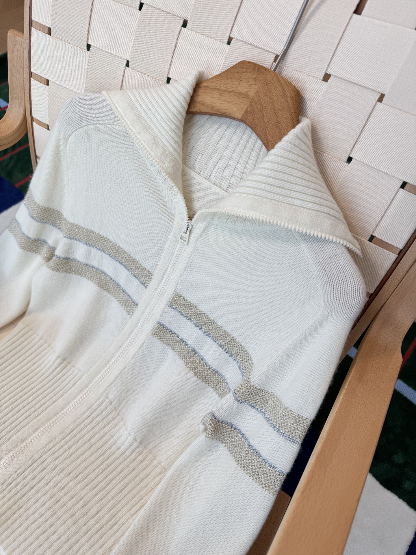25年新款滑雪限定系列🏂必留款🆕拉链小翻领五角星⭐️针织衫☑️简约又好穿🤩🤩超温柔的奶白色🫶🏻上身真的很仙💫常规版型✨特别精致😜贴身穿着完全不扎,软软糯糯🫶🏻上身骨感显瘦🔜纤细身材线条感~~质感真的绝了🉑真的是太太太好看啦😜简直就是掌管秋冬老钱风的神❗️❗️码数SML