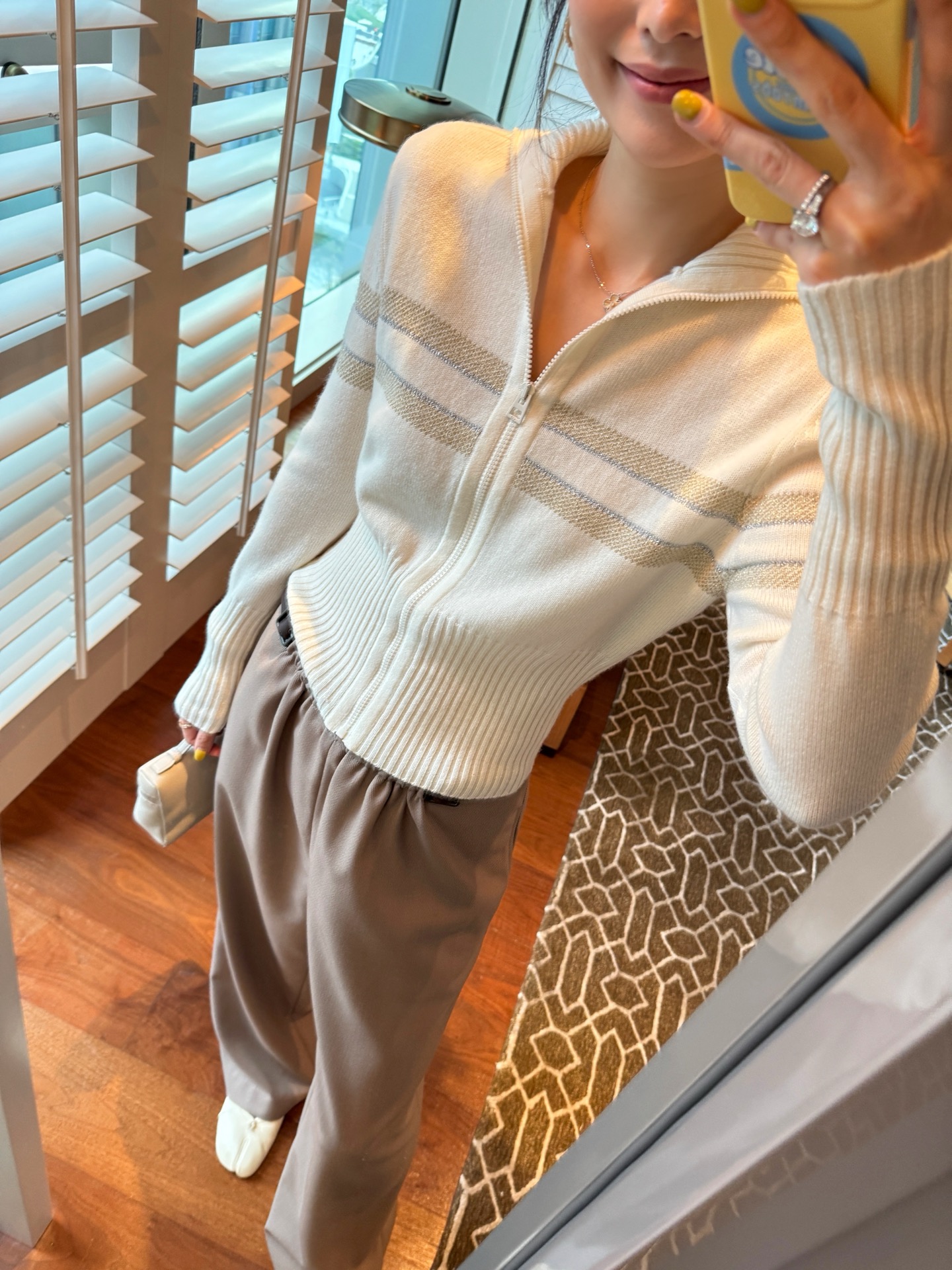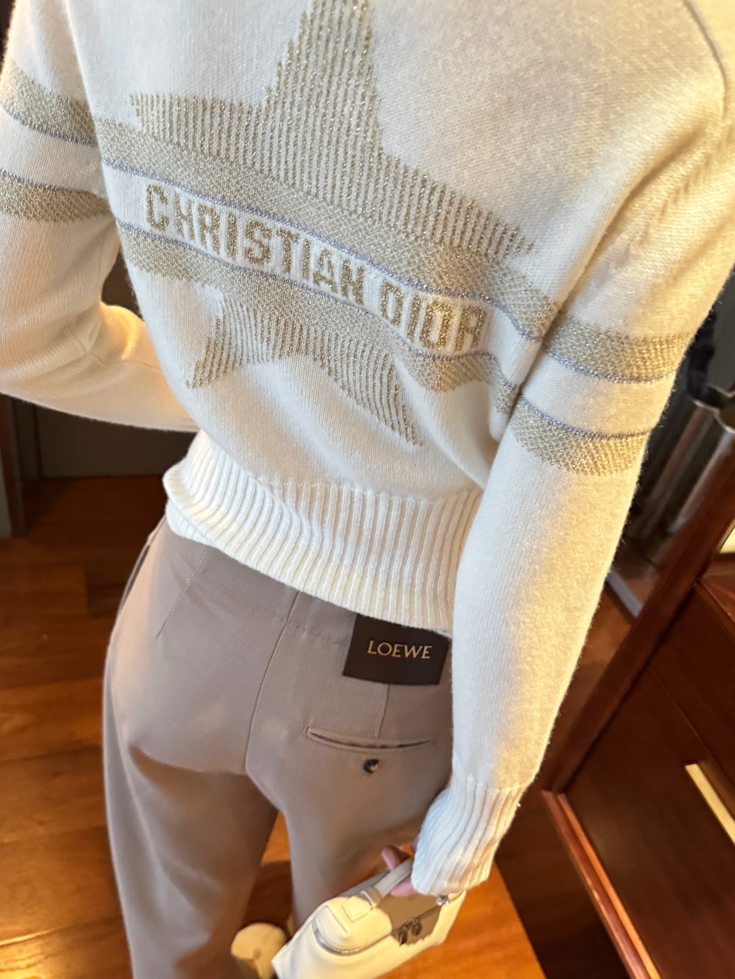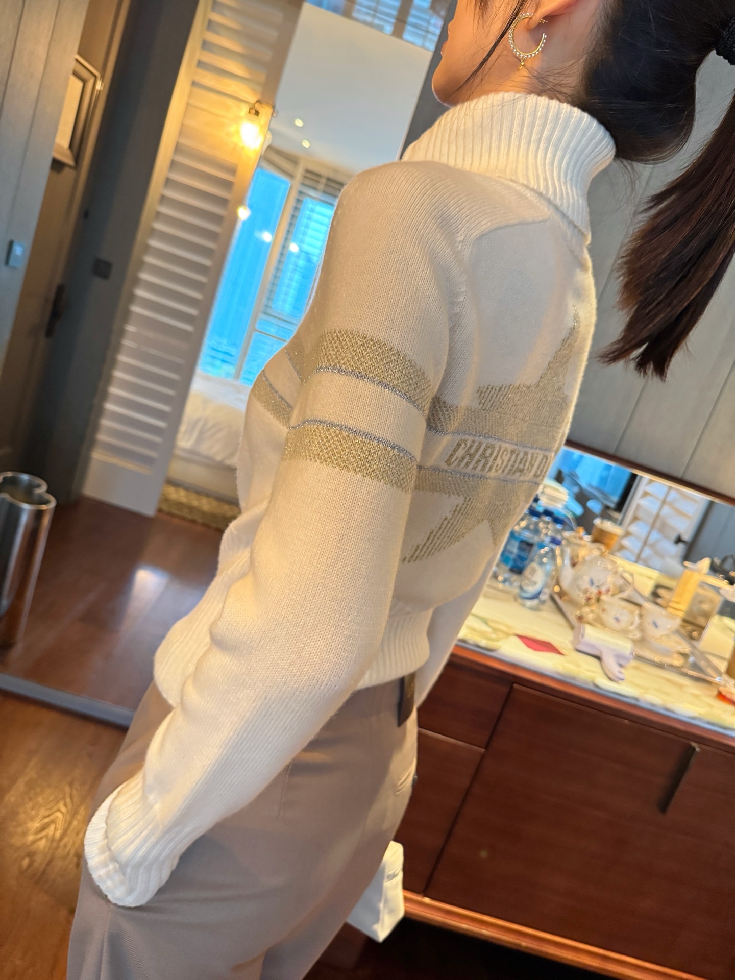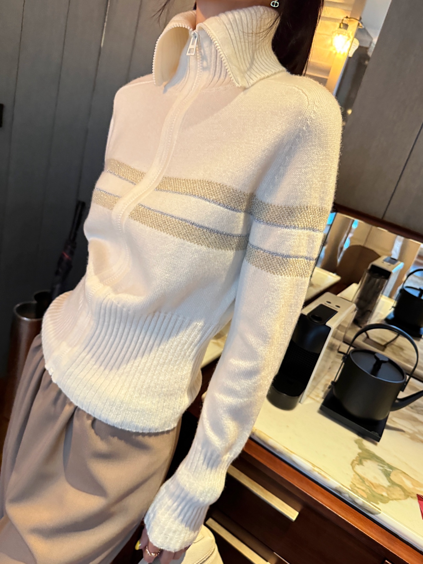 25年新款滑雪限定系列🏂必留款🆕拉链小翻领五角星⭐️针织衫☑️简约又好穿🤩🤩超温柔的奶白色🫶🏻上身真的很仙💫常规版型✨特别精致😜贴身穿着完全不扎,软软糯糯🫶🏻上身骨感显瘦🔜纤细身材线条感~~质感真的绝了🉑真的是太太太好看啦😜简直就是掌管秋冬老钱风的神❗️❗️码数SML