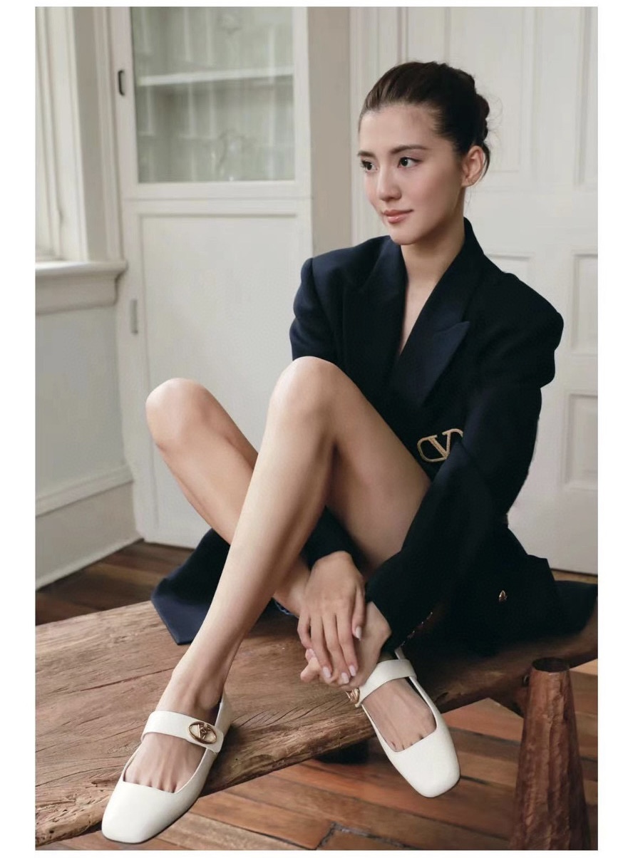 玛丽珍袢带所设位置略高,还带有松紧调节,脚背高的妹子也可完美驾驭 鞋型非常秀气很显脚瘦