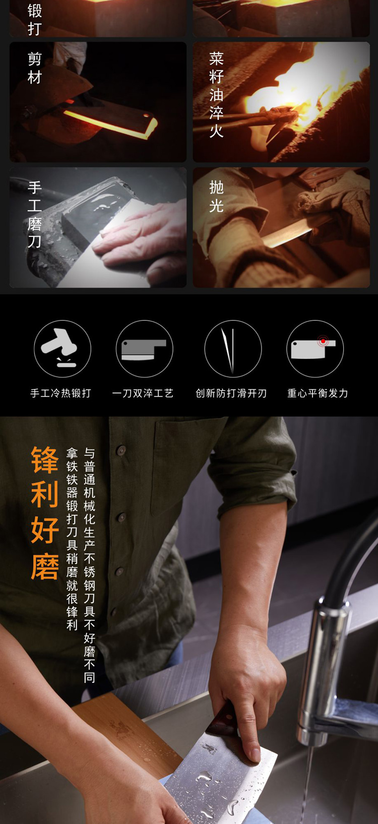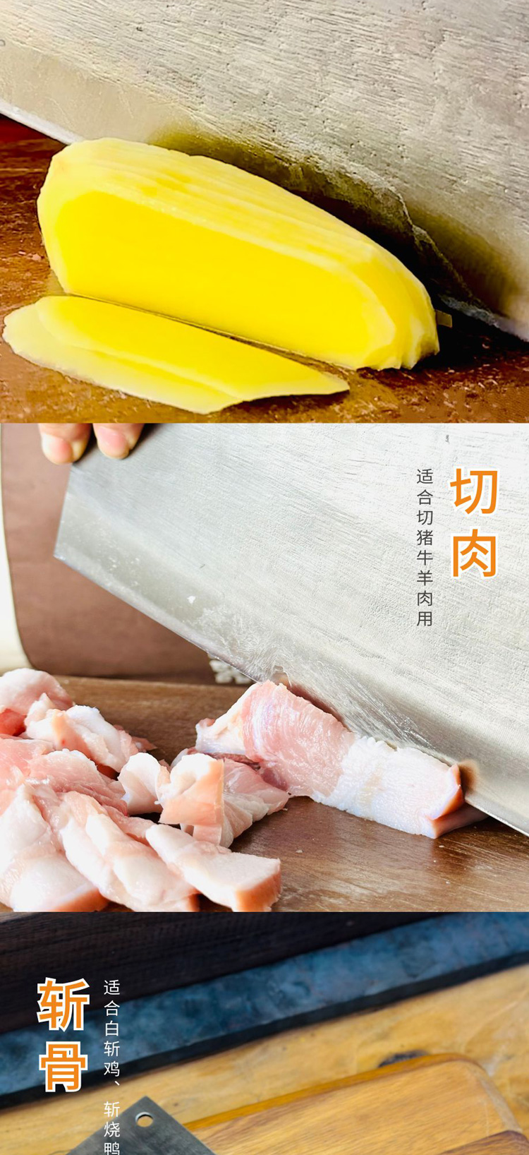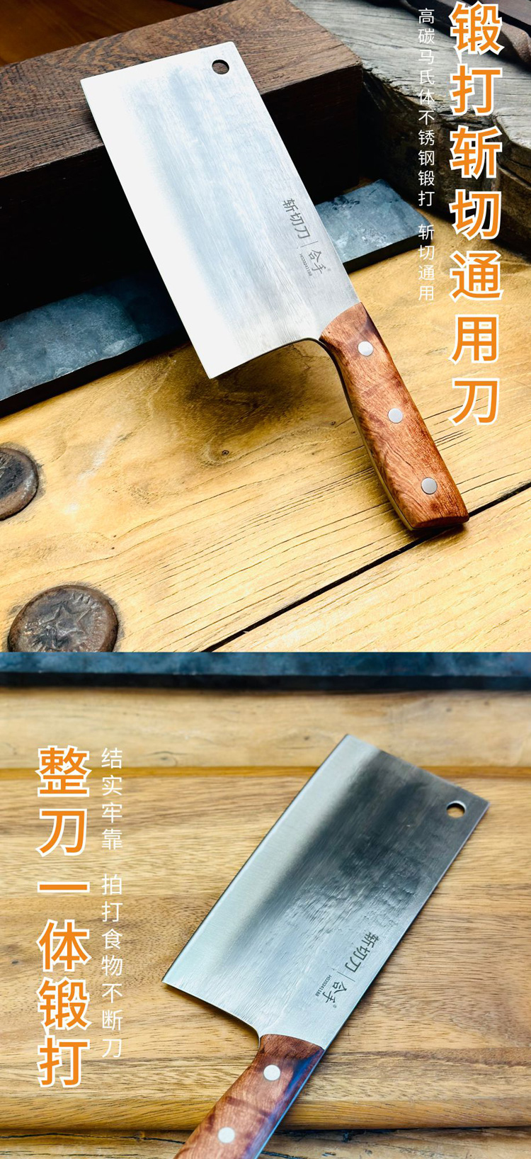 【送磨刀石】拿铁铁器·合手斩切刀 | 手工锻打菜刀 持久锋利 可斩骨/切片/拍蒜/剁肉 一刀搞定家庭各种用刀需求