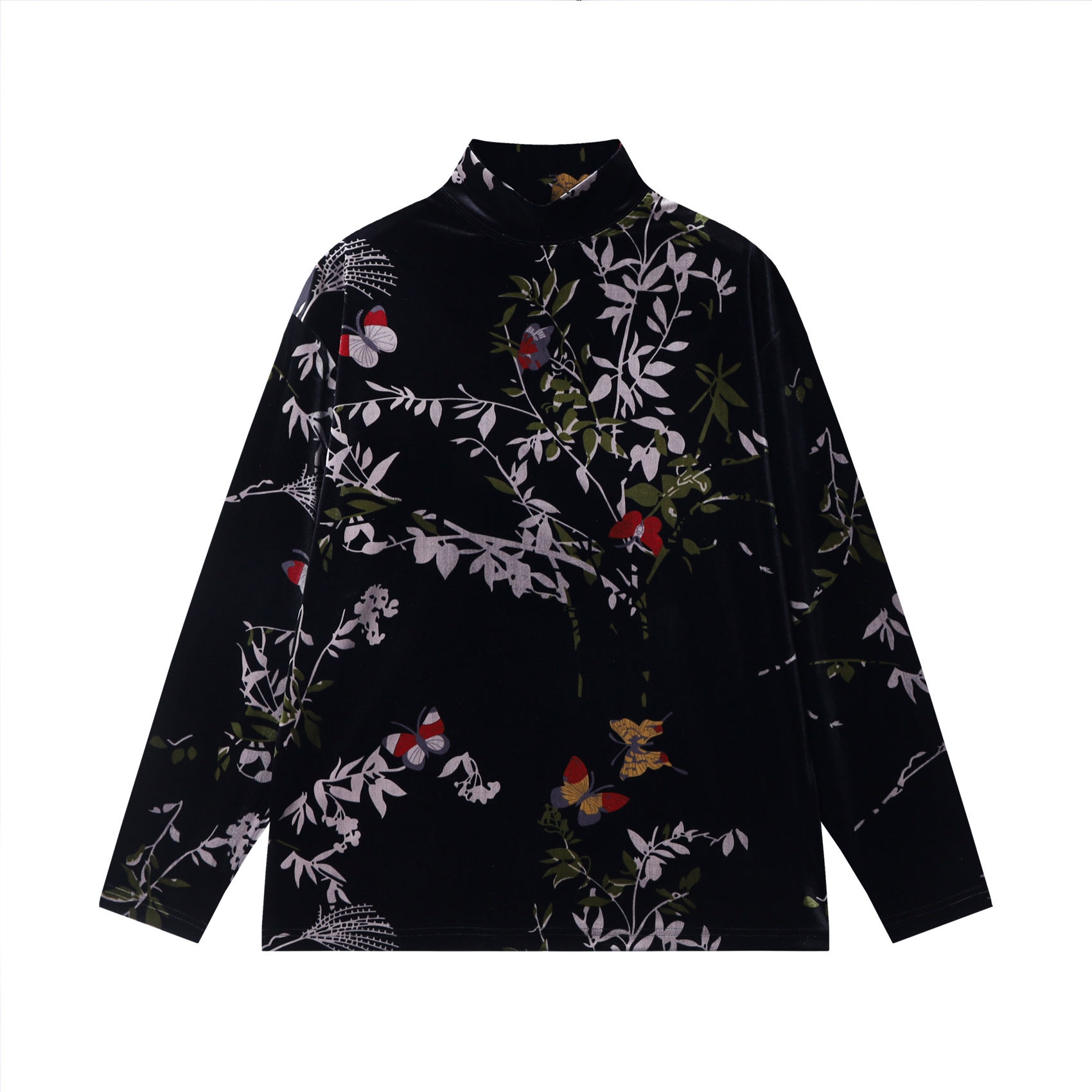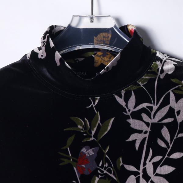 秋冬季新款时尚个性复古绒面撞色半高领长袖T恤新中式国风百搭