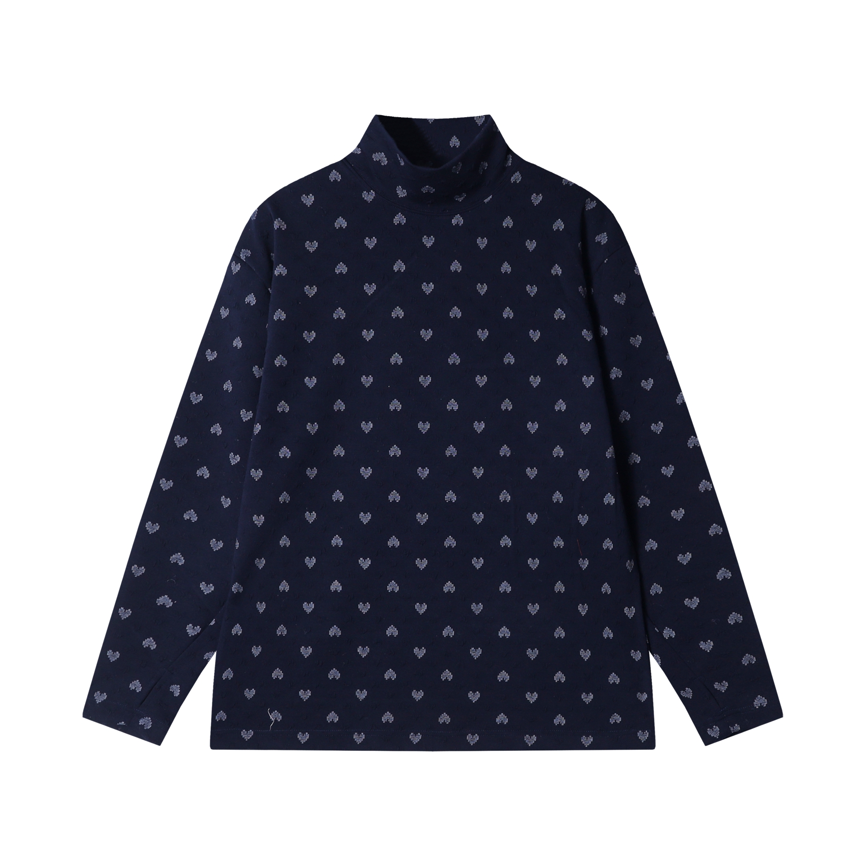 T2059秋冬季新款时尚个性满印爱心提花长袖T恤百搭高级小众设计上衣潮