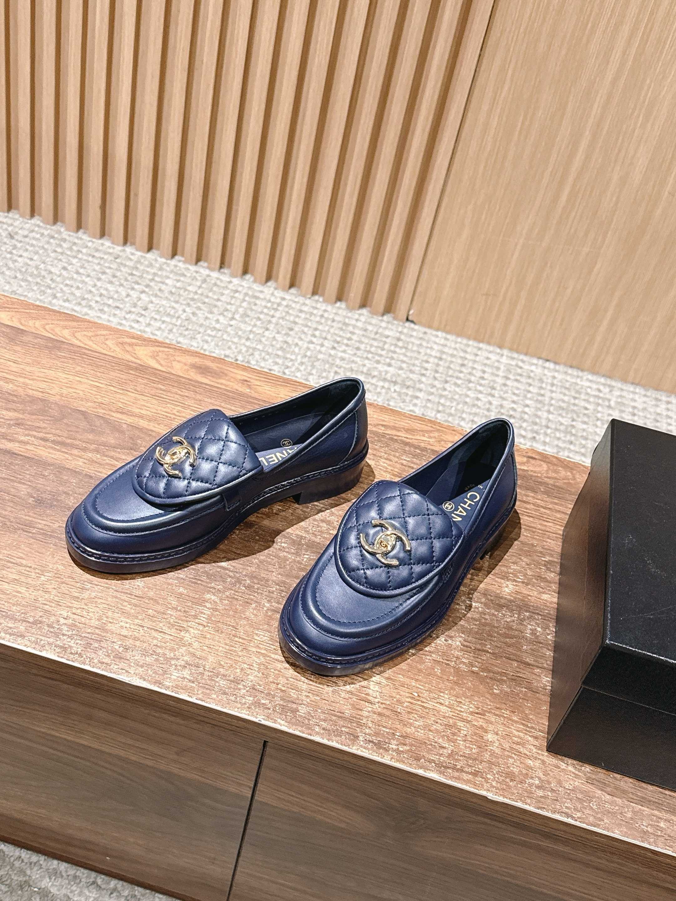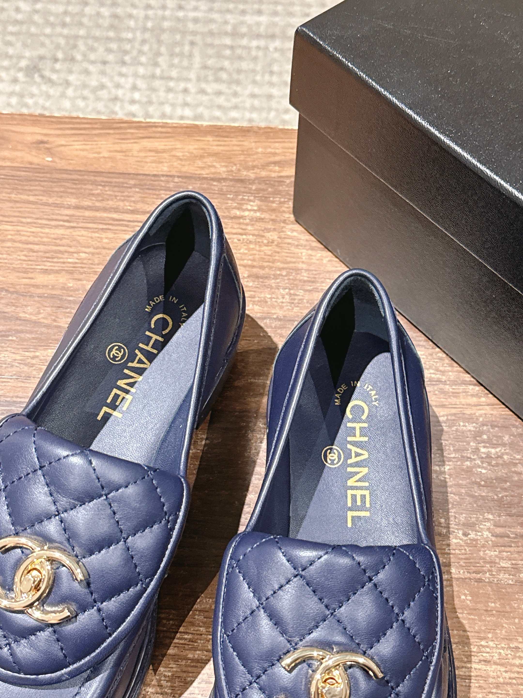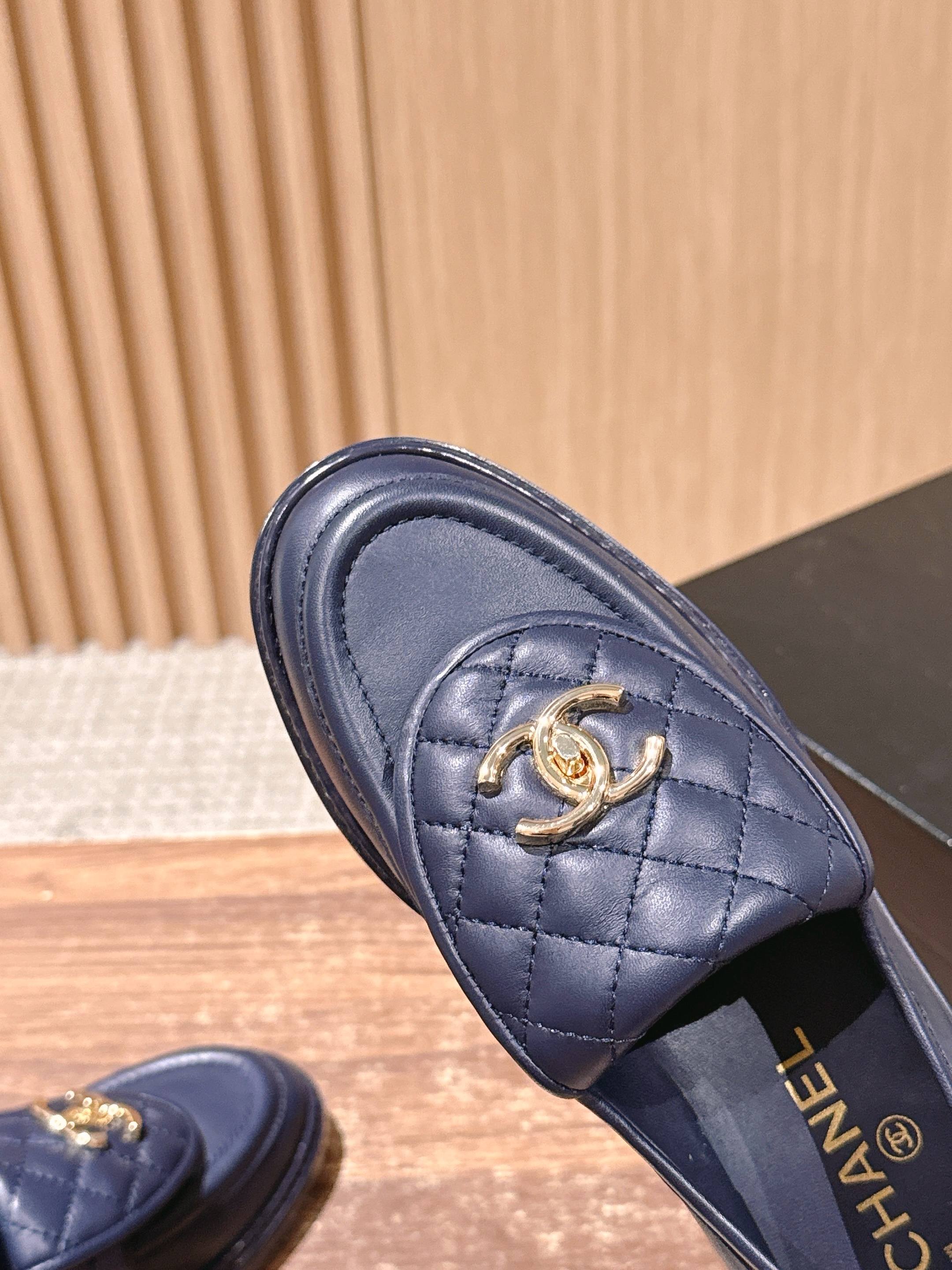 香奈儿 中古菱格 经典复古羊皮乐福鞋(DBG)