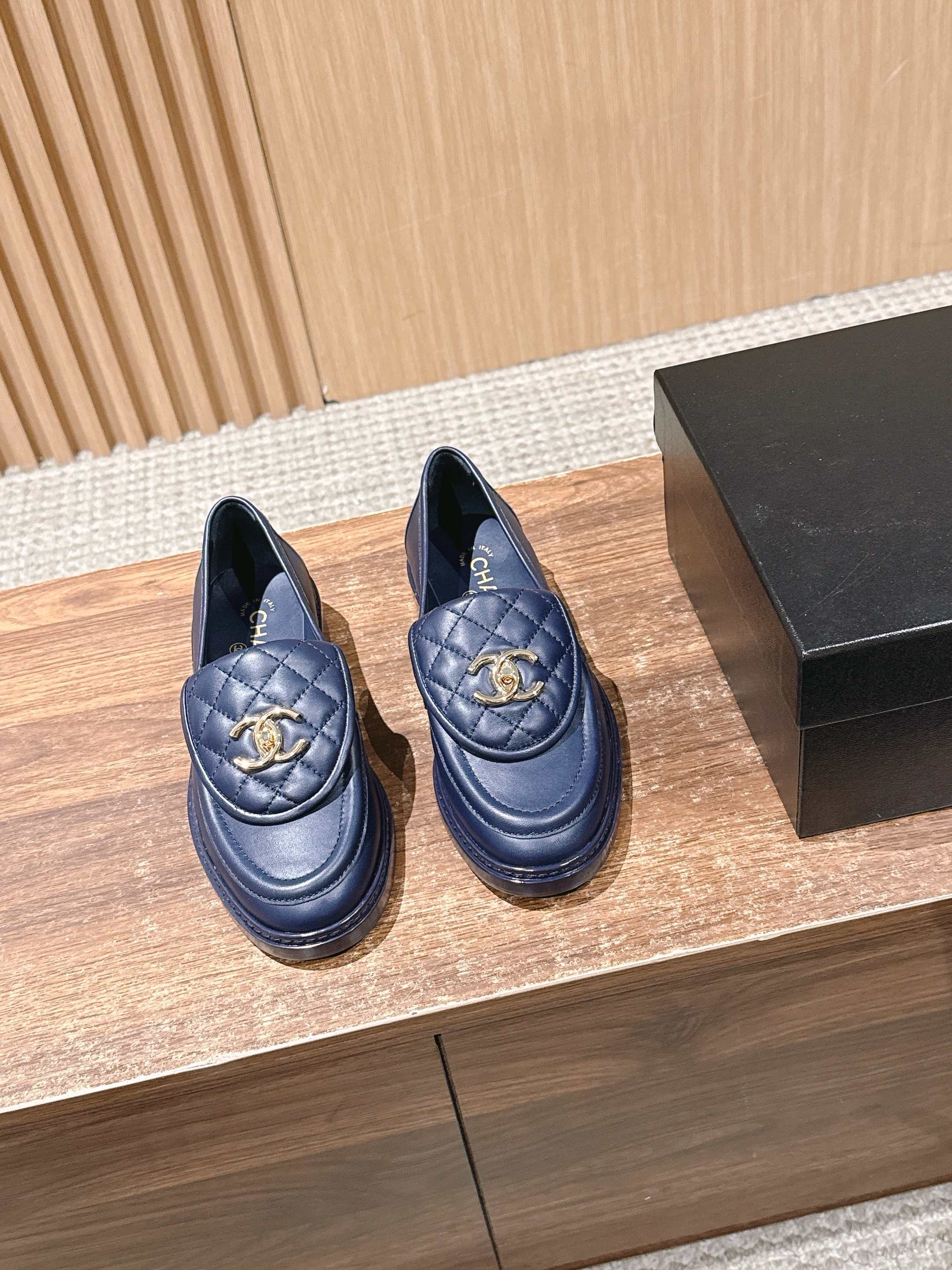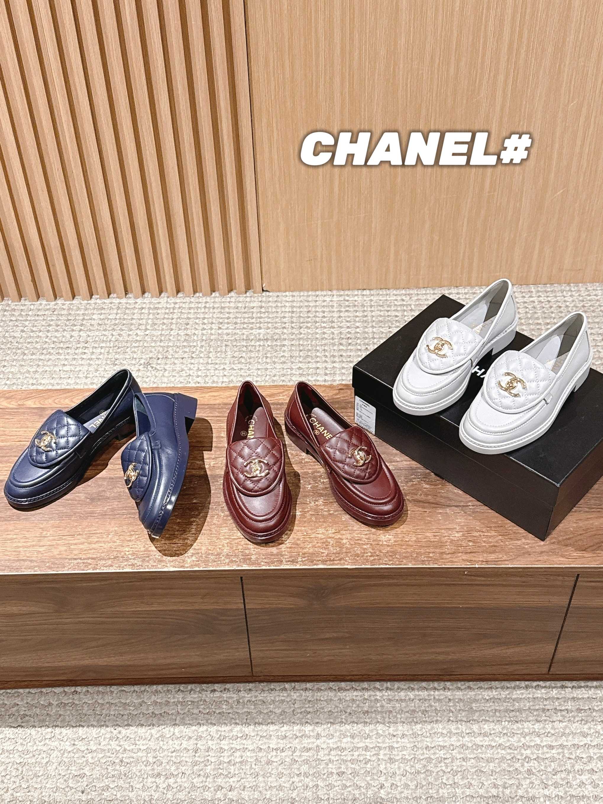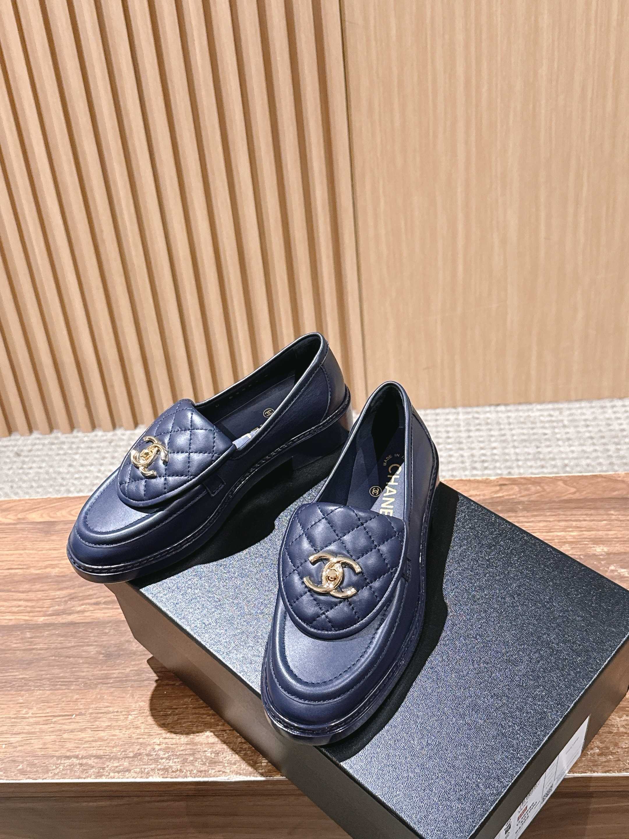 香奈儿 中古菱格 经典复古羊皮乐福鞋(DBG)