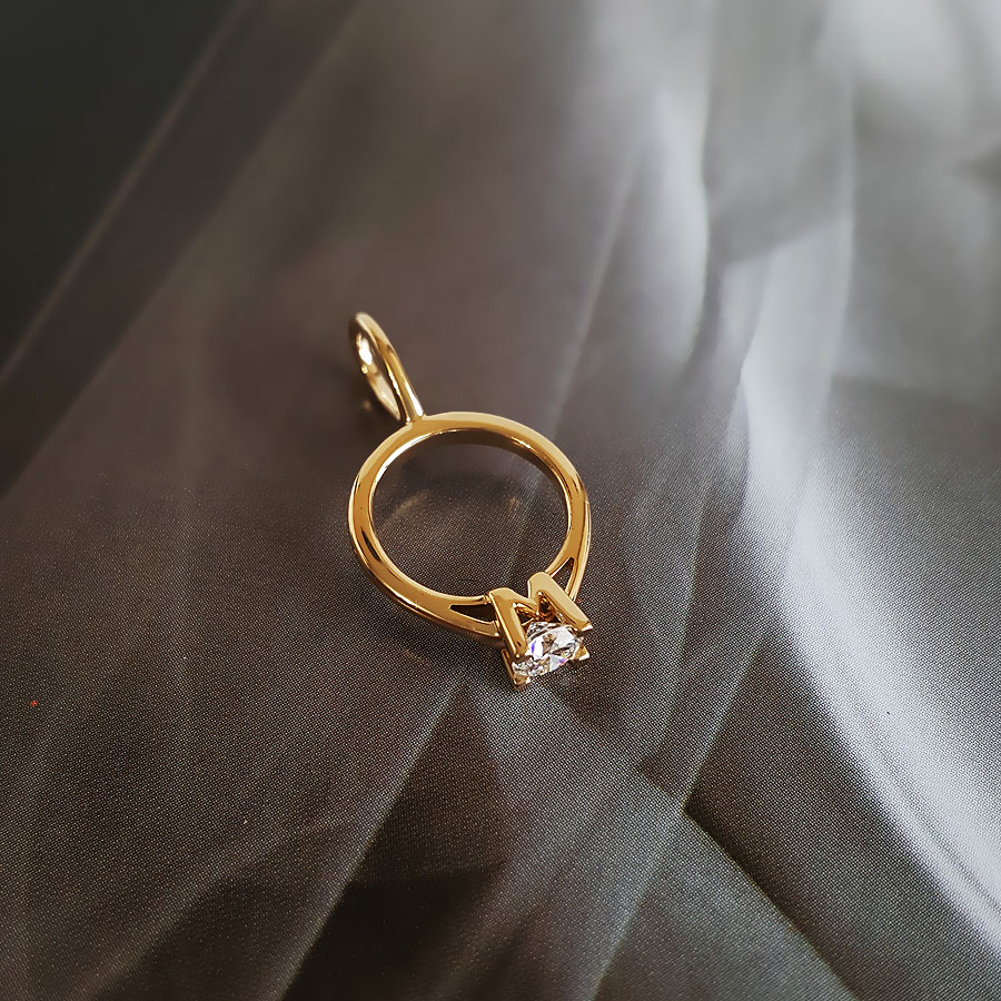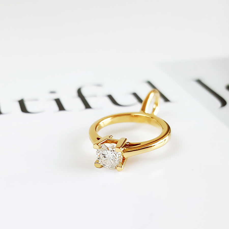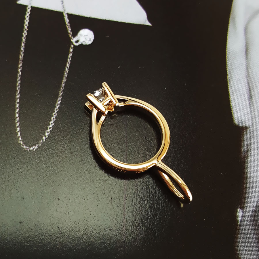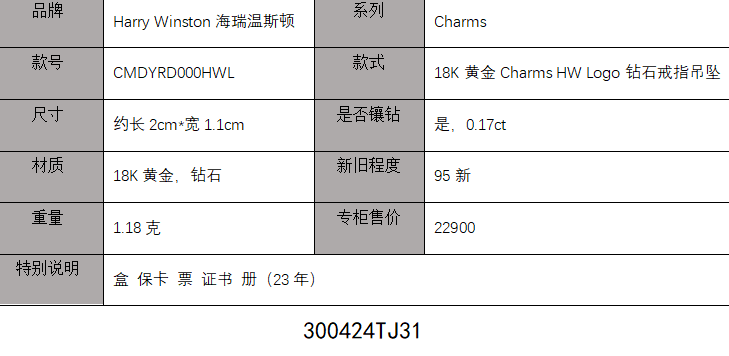 【二手95新】Harry Winston海瑞温斯顿18K黄金Charms HW Logo钻石戒指吊坠现售价:8500!特价300424TJ31