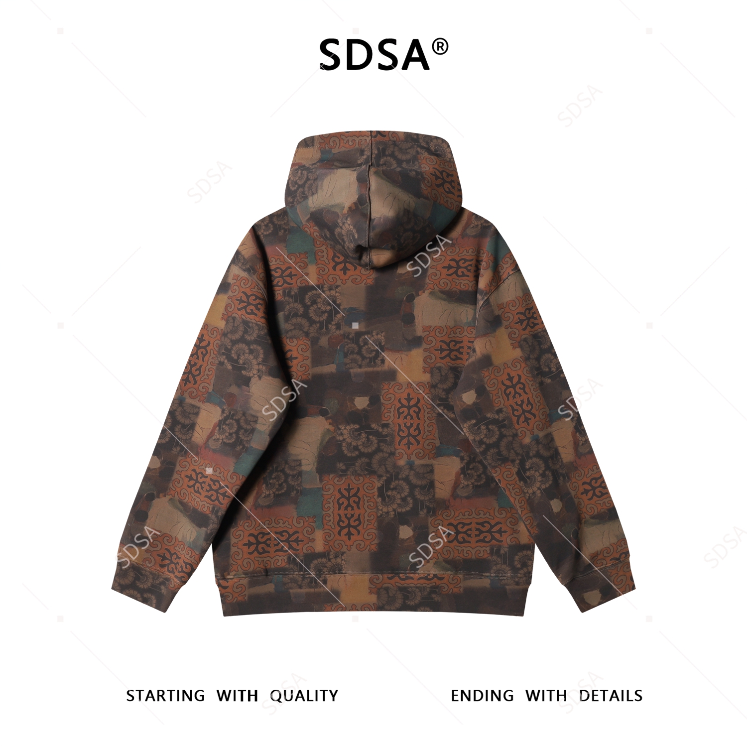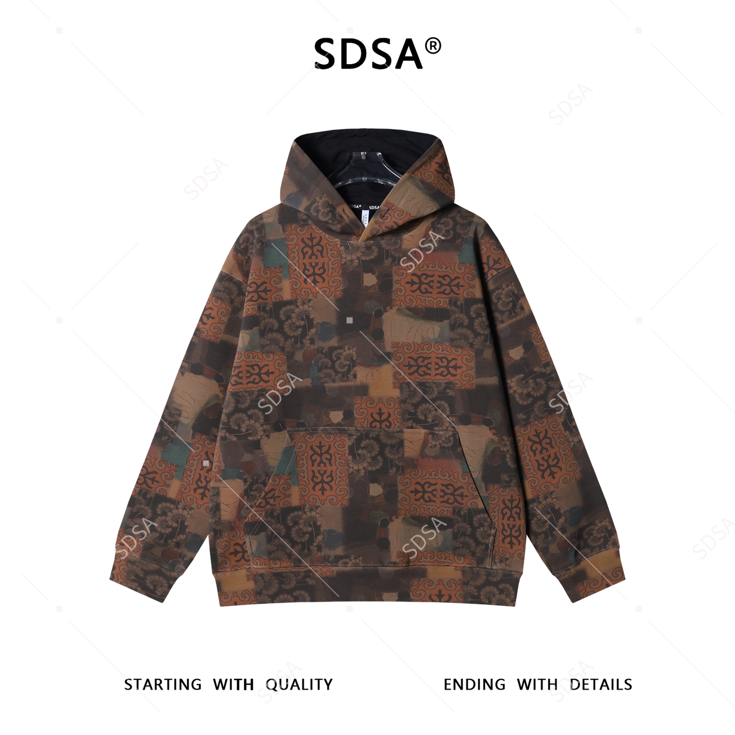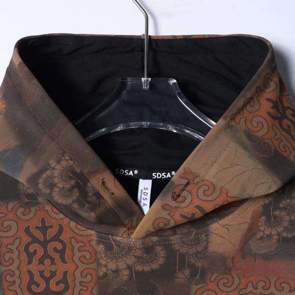 SDSA男士秋冬新款痞帅男装潮牌扎染撞色植物花卉连帽卫衣百搭时尚