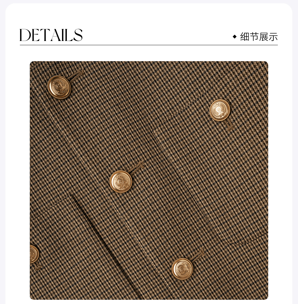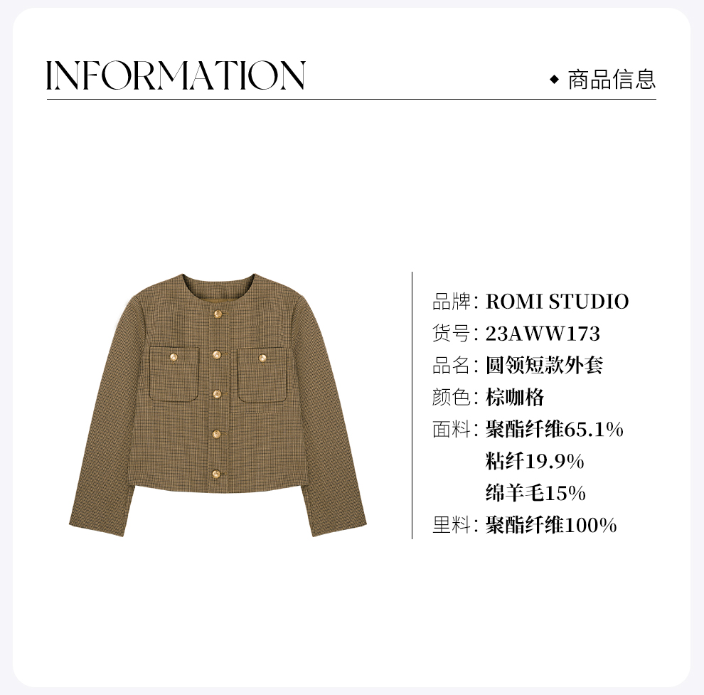 ROMI STUDIO“多面优雅”早秋羊毛法式千鸟格圆领短款外套23AWW173