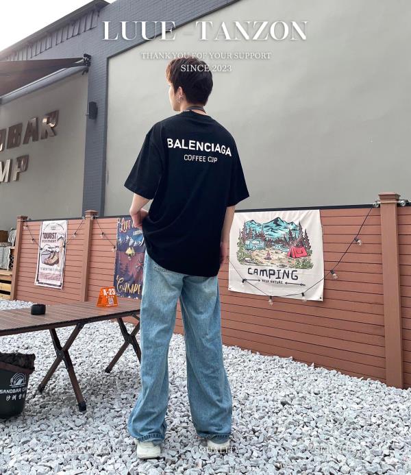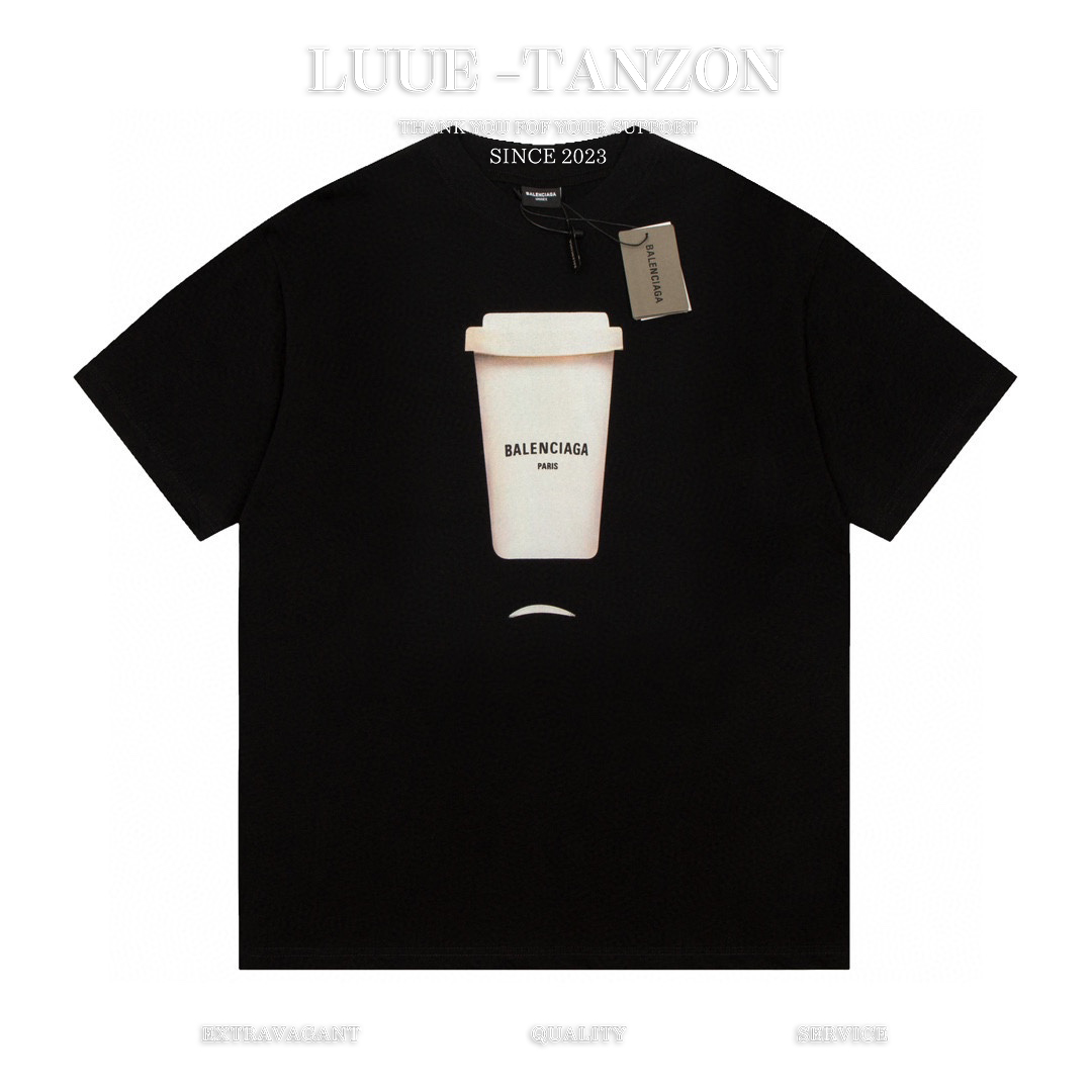 高品质 Balenciga/巴黎世家2023SS 塑料杯图案短袖~标准的康丽直喷数码技术和数码渐变印花技术,纯棉柔软面料,对色定染面料,超精细平网印花工艺,潮流感十足,定染纯棉面料,OS版型,三标齐全,男女同款。