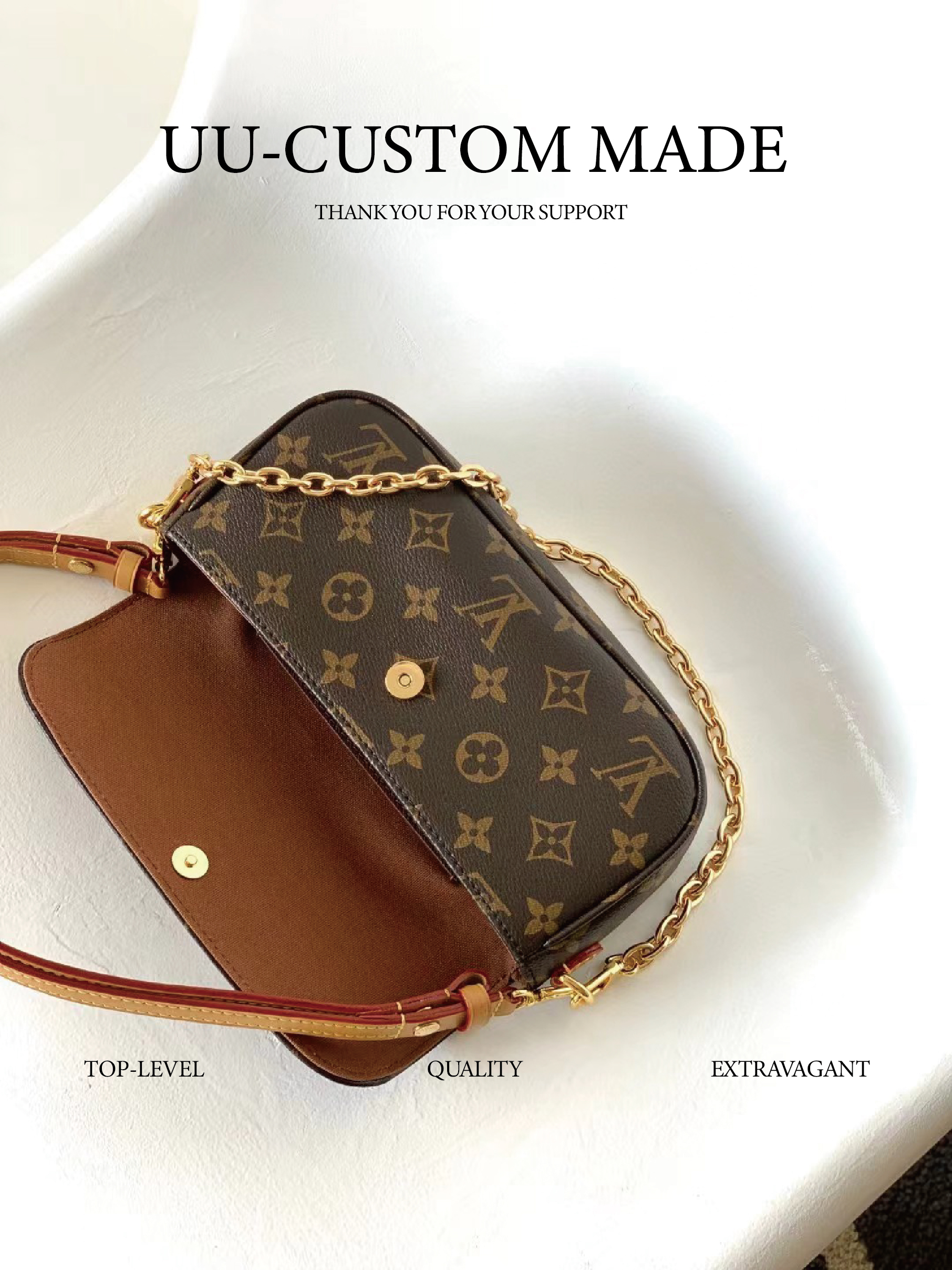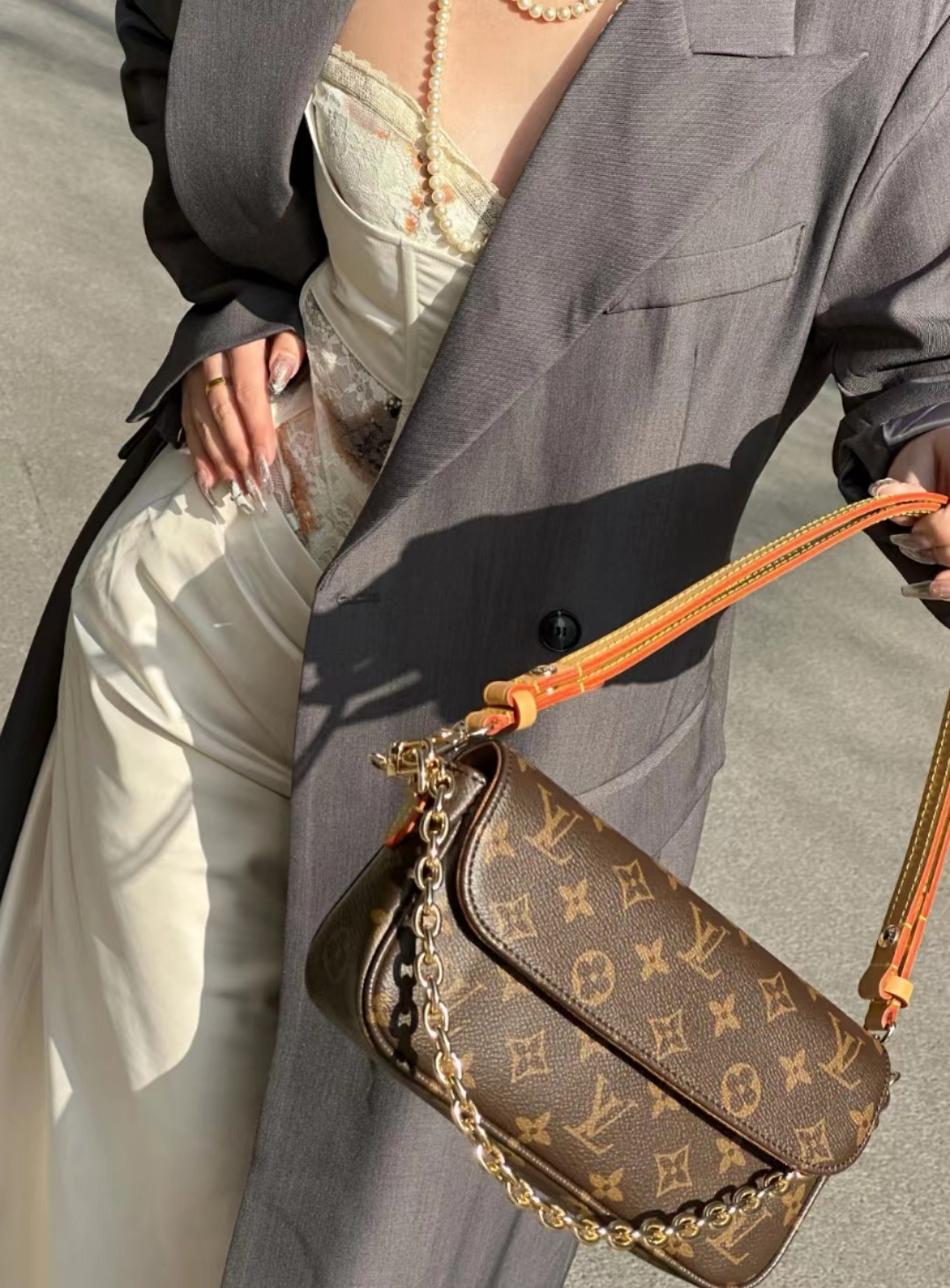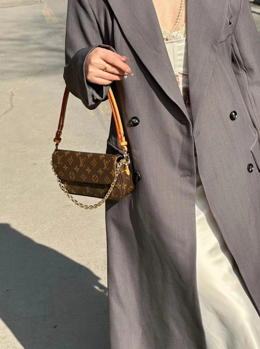 驴家 ivy *老花印花链条 涂层帆布 法棍腋下包手提单肩包 女款 棕色(CB)