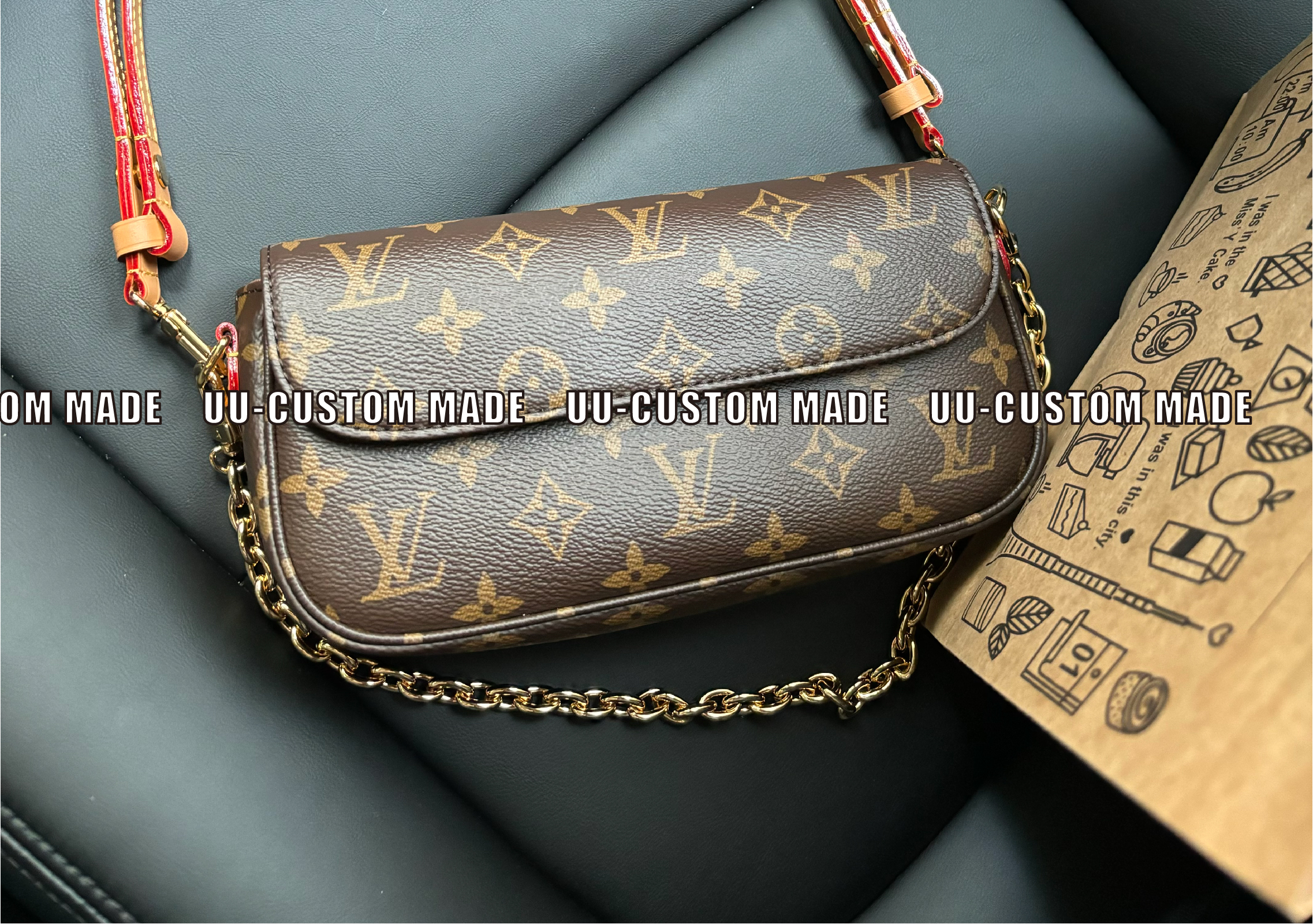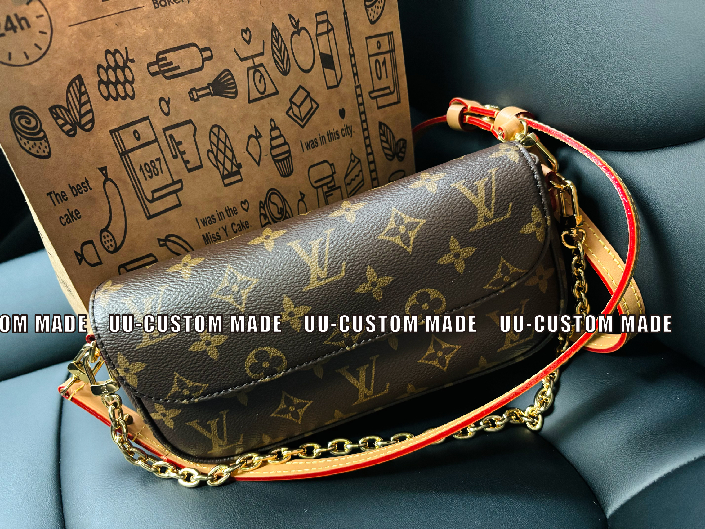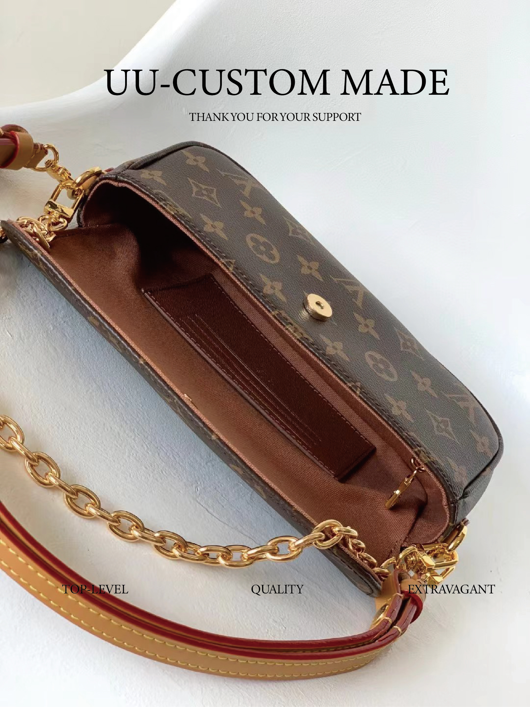 驴家 ivy *老花印花链条 涂层帆布 法棍腋下包手提单肩包 女款 棕色(CB)
