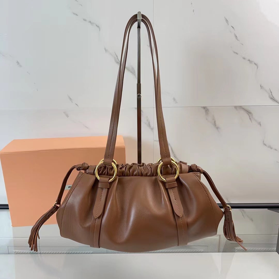 进口小羊皮材质搭配复古金色五金配件,包口采用抽绳束口设计,细密的皱褶像花边般立体而俏皮,纤长双提手可单肩可手提,也能随意捧在腰际,营造出慵懒随性调调,时髦百搭,日常出游,上班通勤都是绝佳选择。尺寸:32X16 X10.5cm