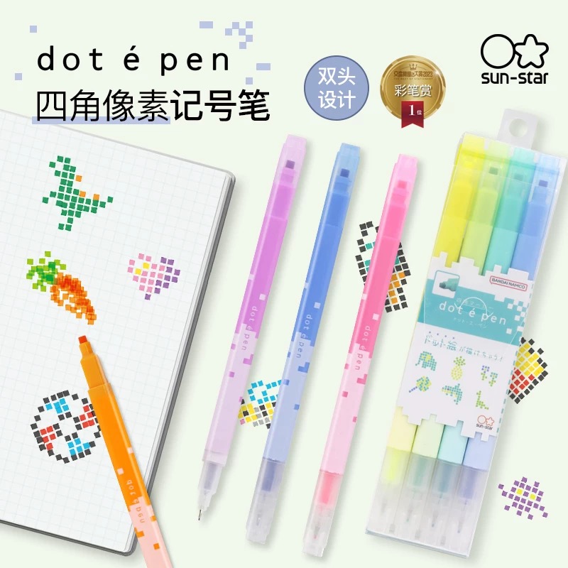 sunstar太阳星双头记号笔方形四角像素创意马克笔立体线条书写标记学生设计师水性墨水单支