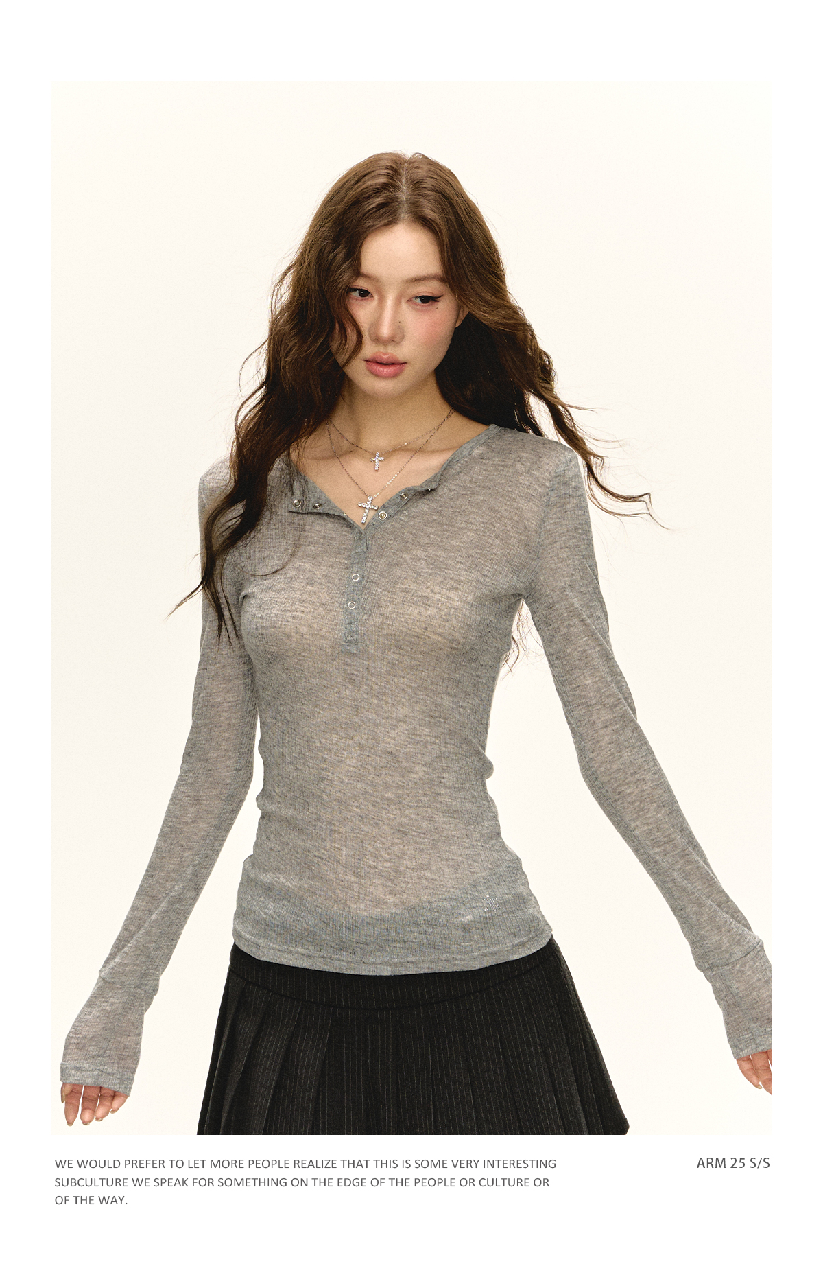 Ariseism 美式复古设计感长袖T恤女秋季新款修身上衣