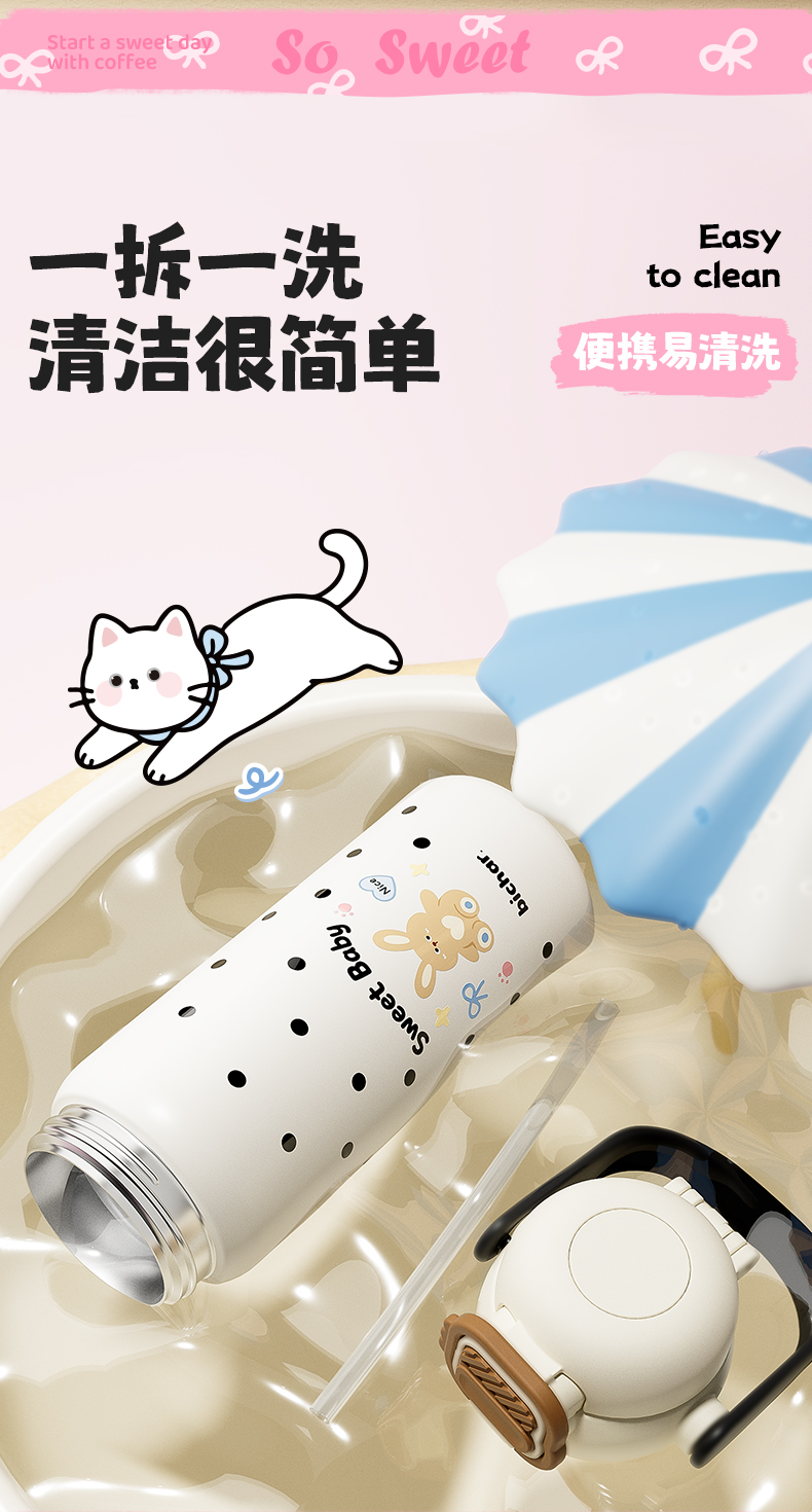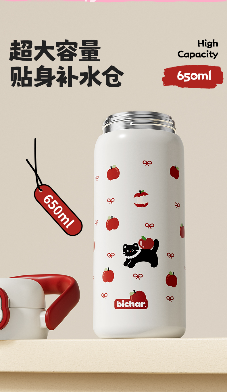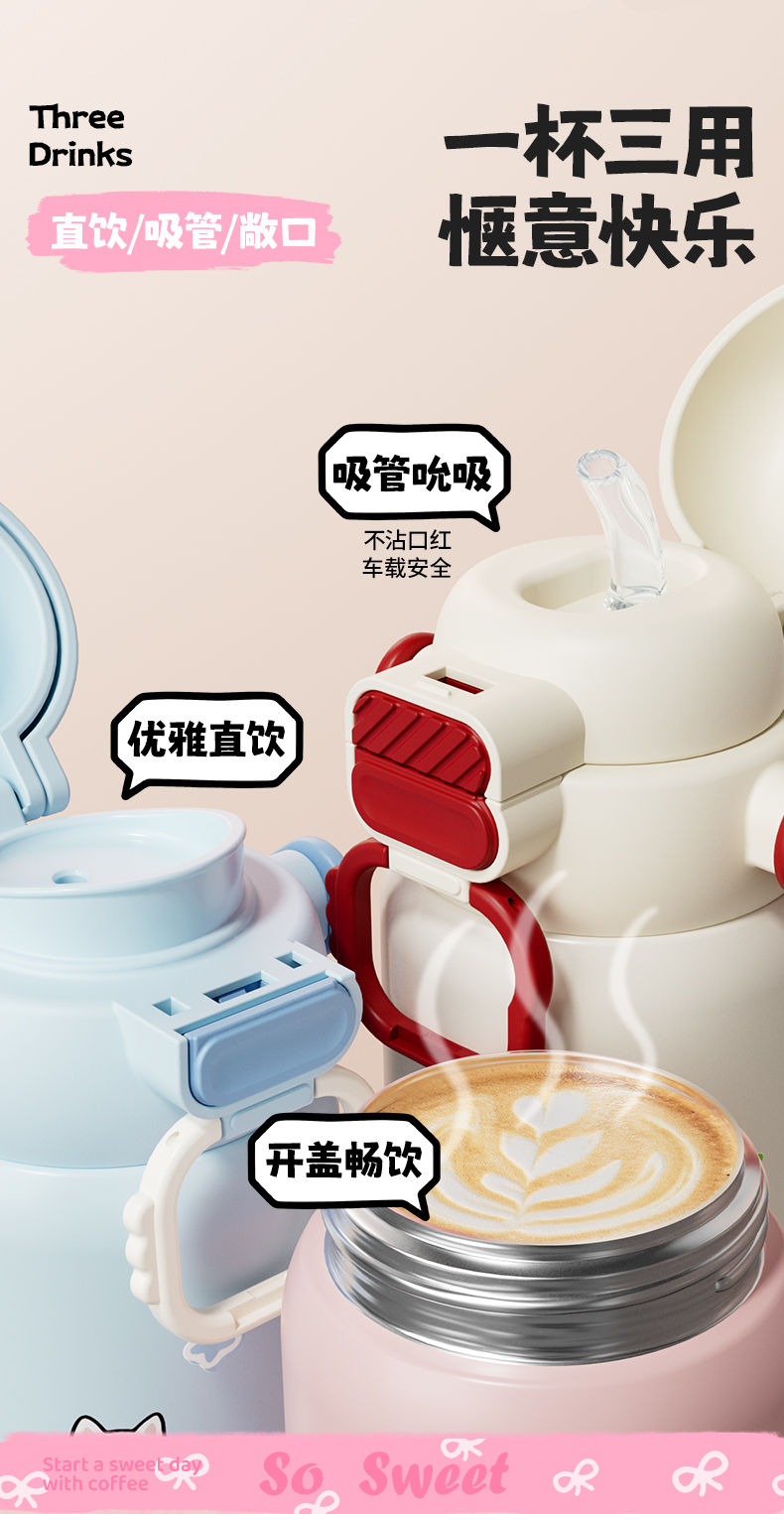 杯趣高颜值小猫日记316L保温杯小拎壶大容量双饮盖