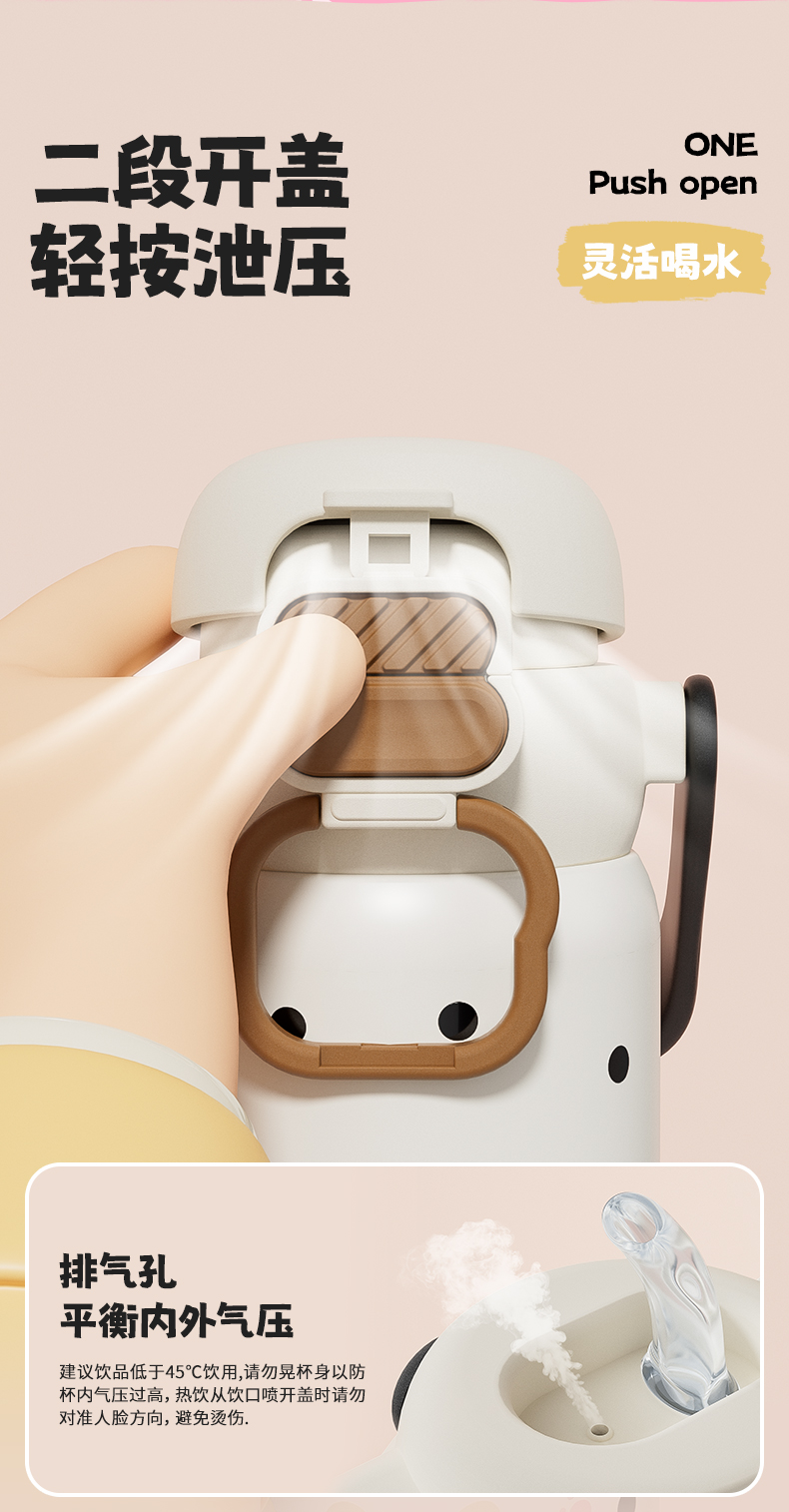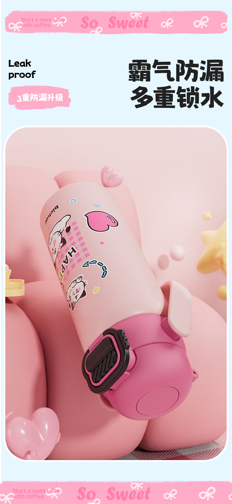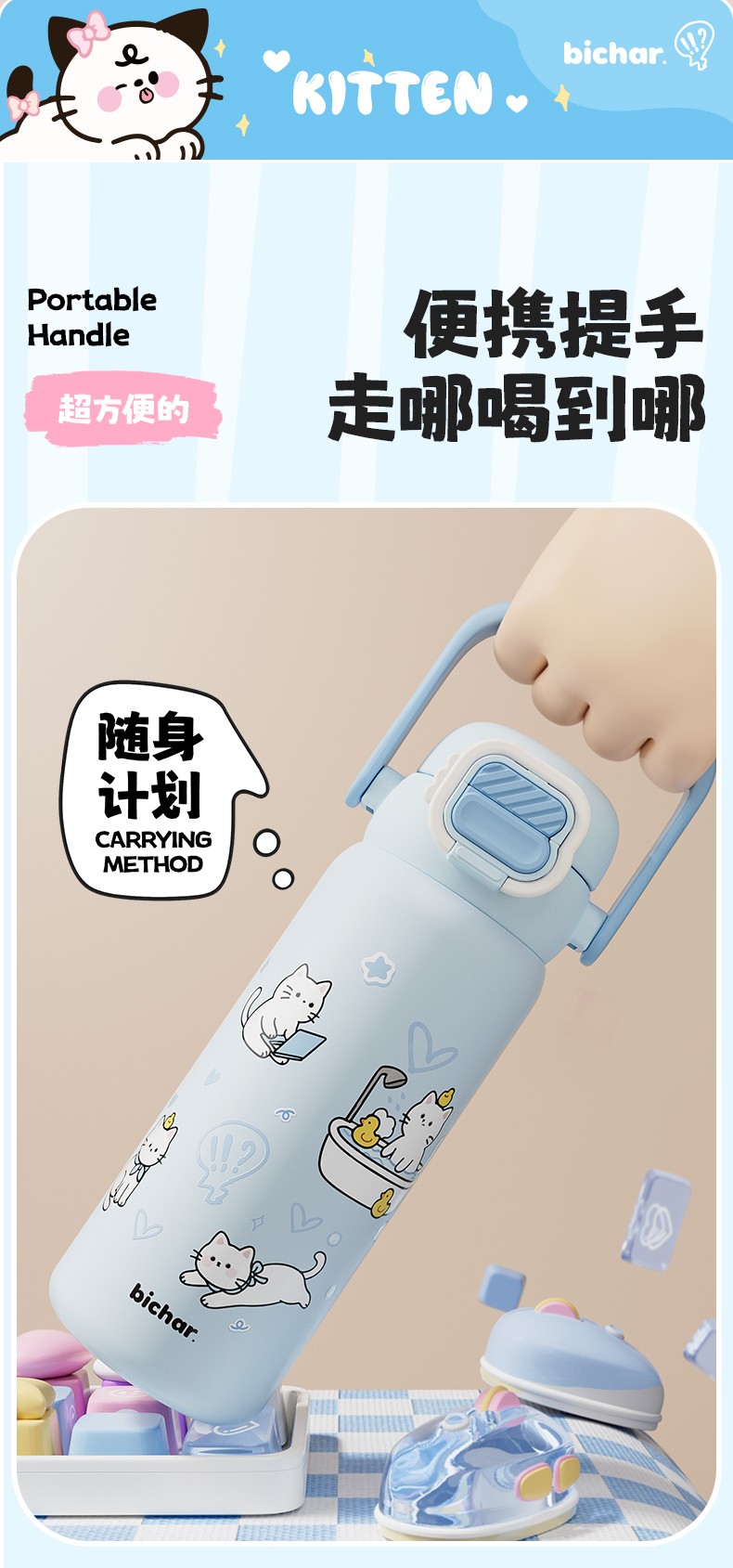 杯趣高颜值小猫日记316L保温杯小拎壶大容量双饮盖