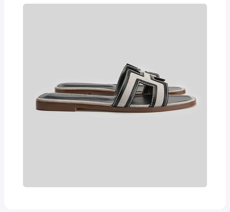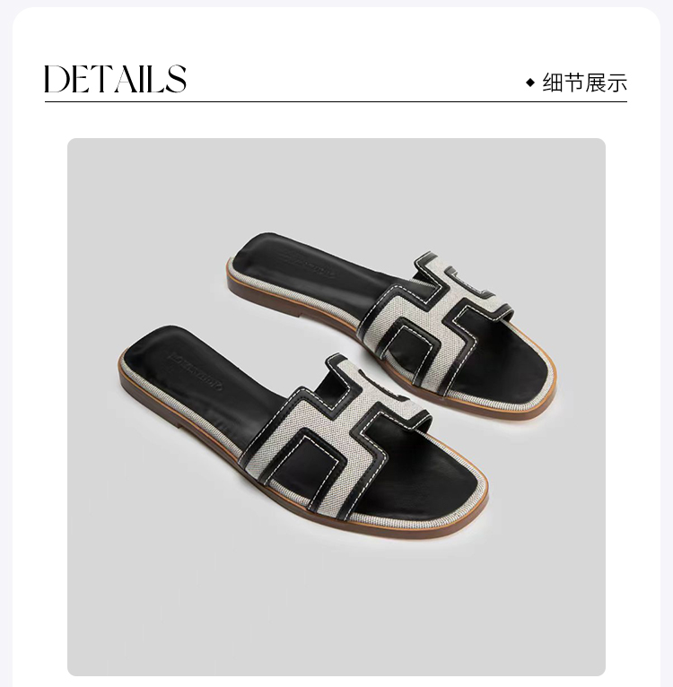 ROMI STUDIO【高品质】复古方头 休闲度假一字平底沙滩H拖鞋S8015