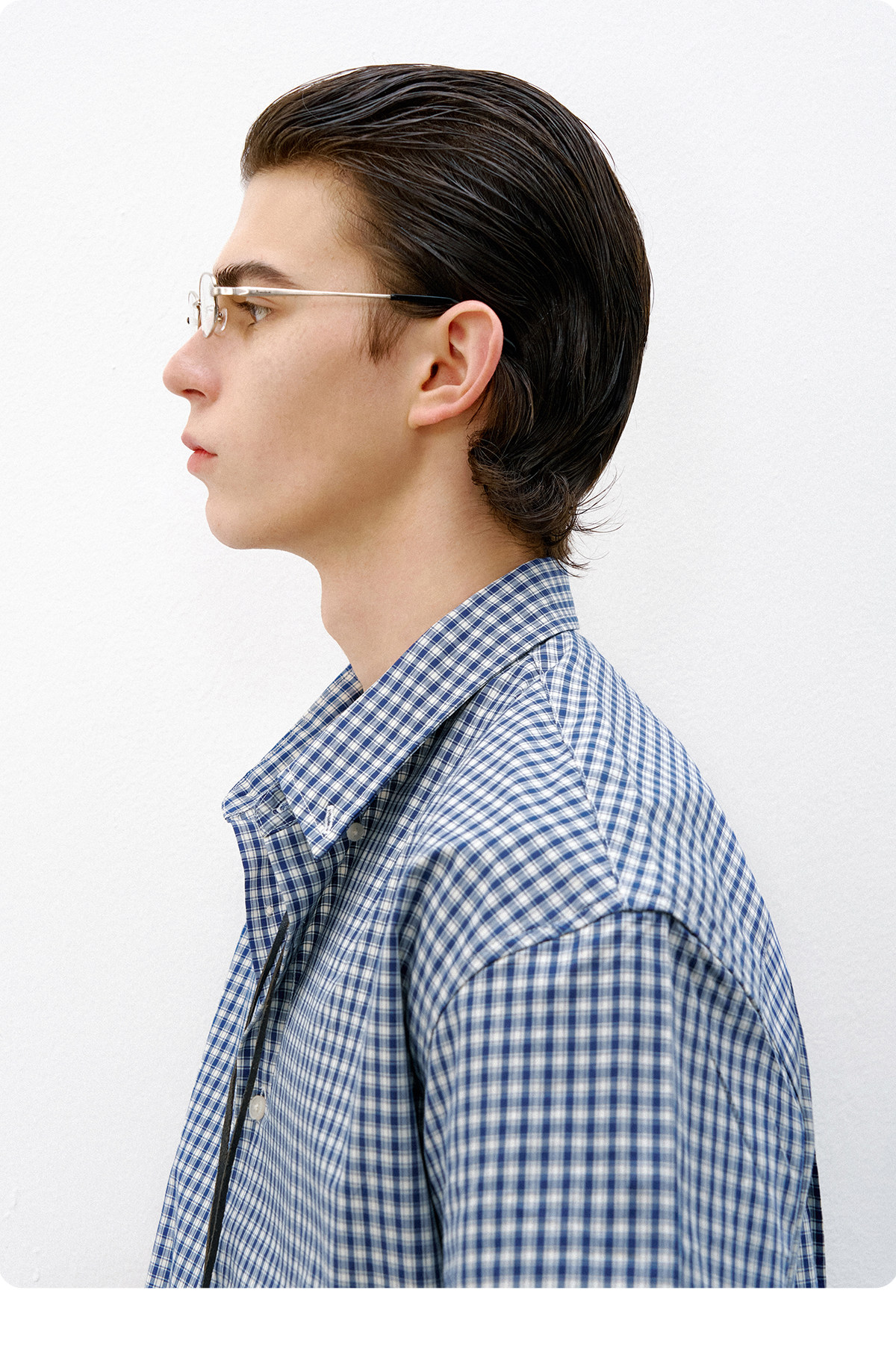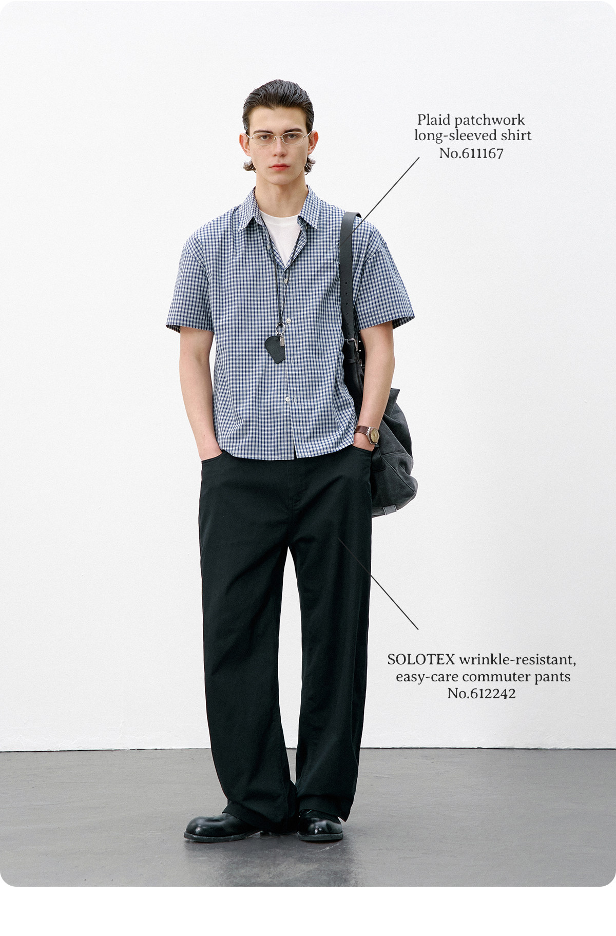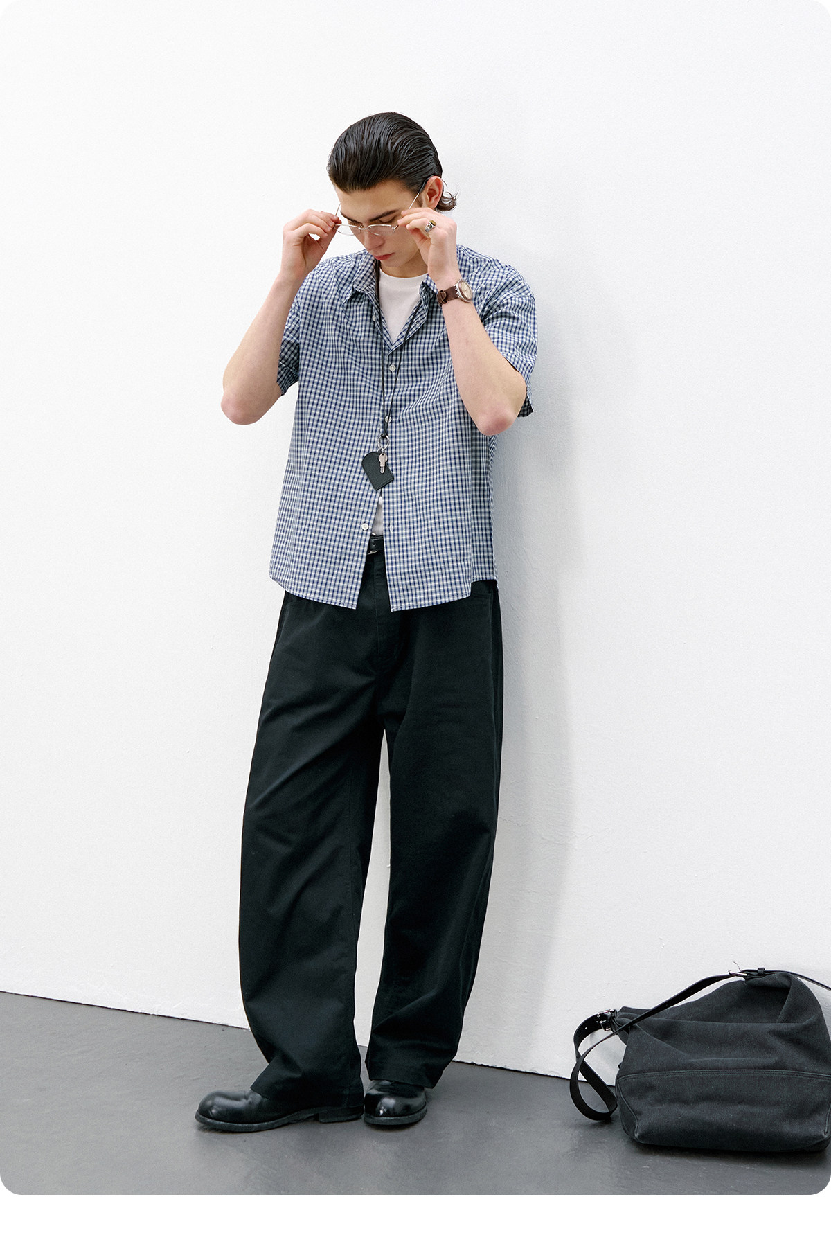 714street休闲宽松纯棉蓝色格子短袖衬衫男2026夏季miu系穿搭衬衣