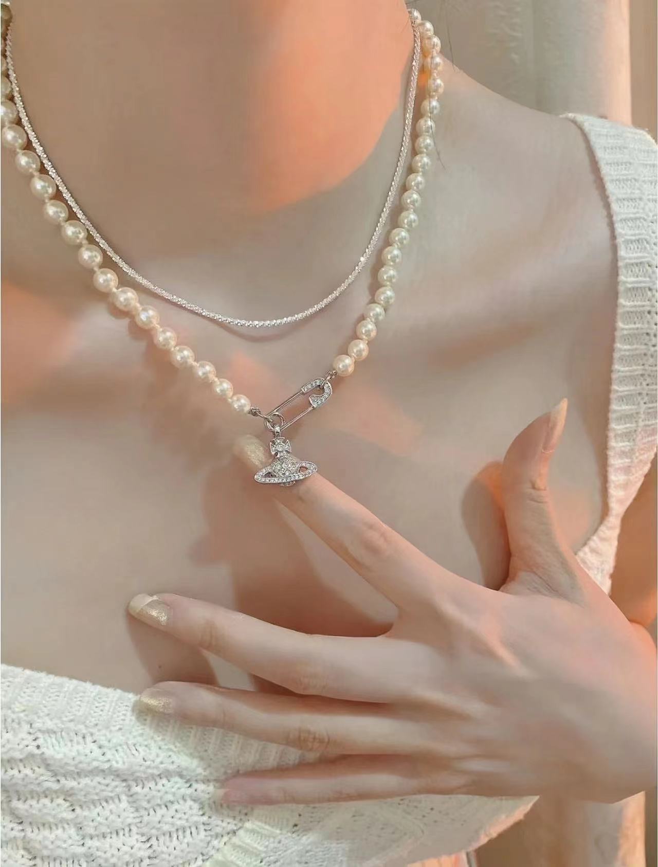 Vivienne Westwood西太后土星🪐珍珠别针项链