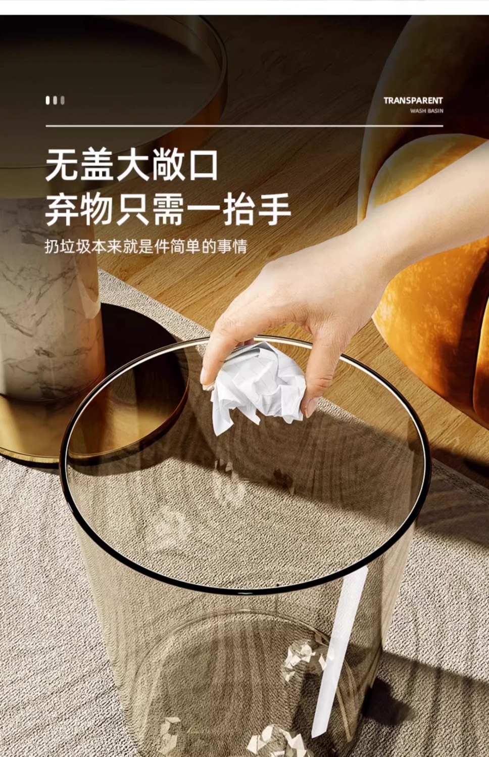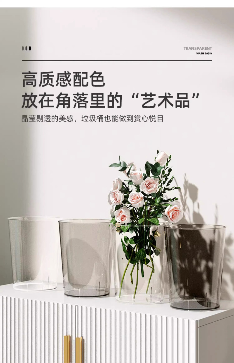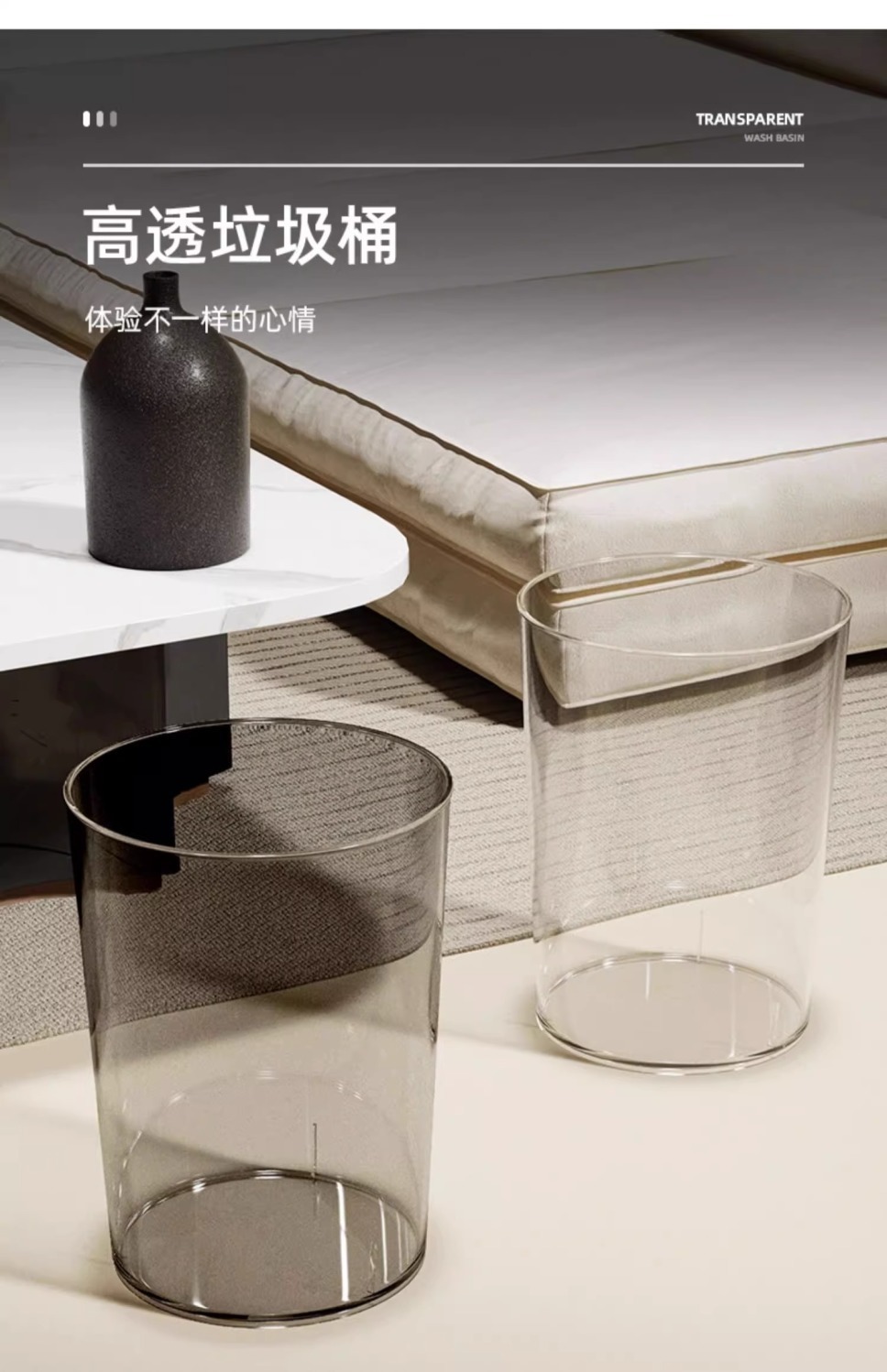 「北欧风!颜值派」垃圾桶客厅居家日用颜值亚克力透明厕所厨房创意大号办公室卧室收纳整理纸篓