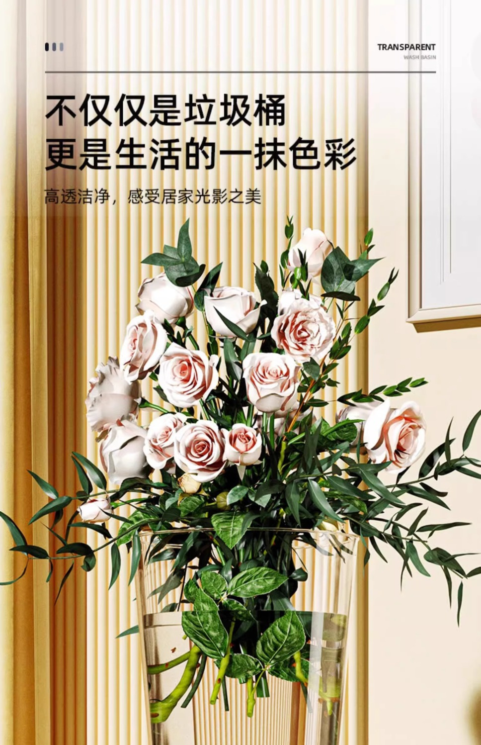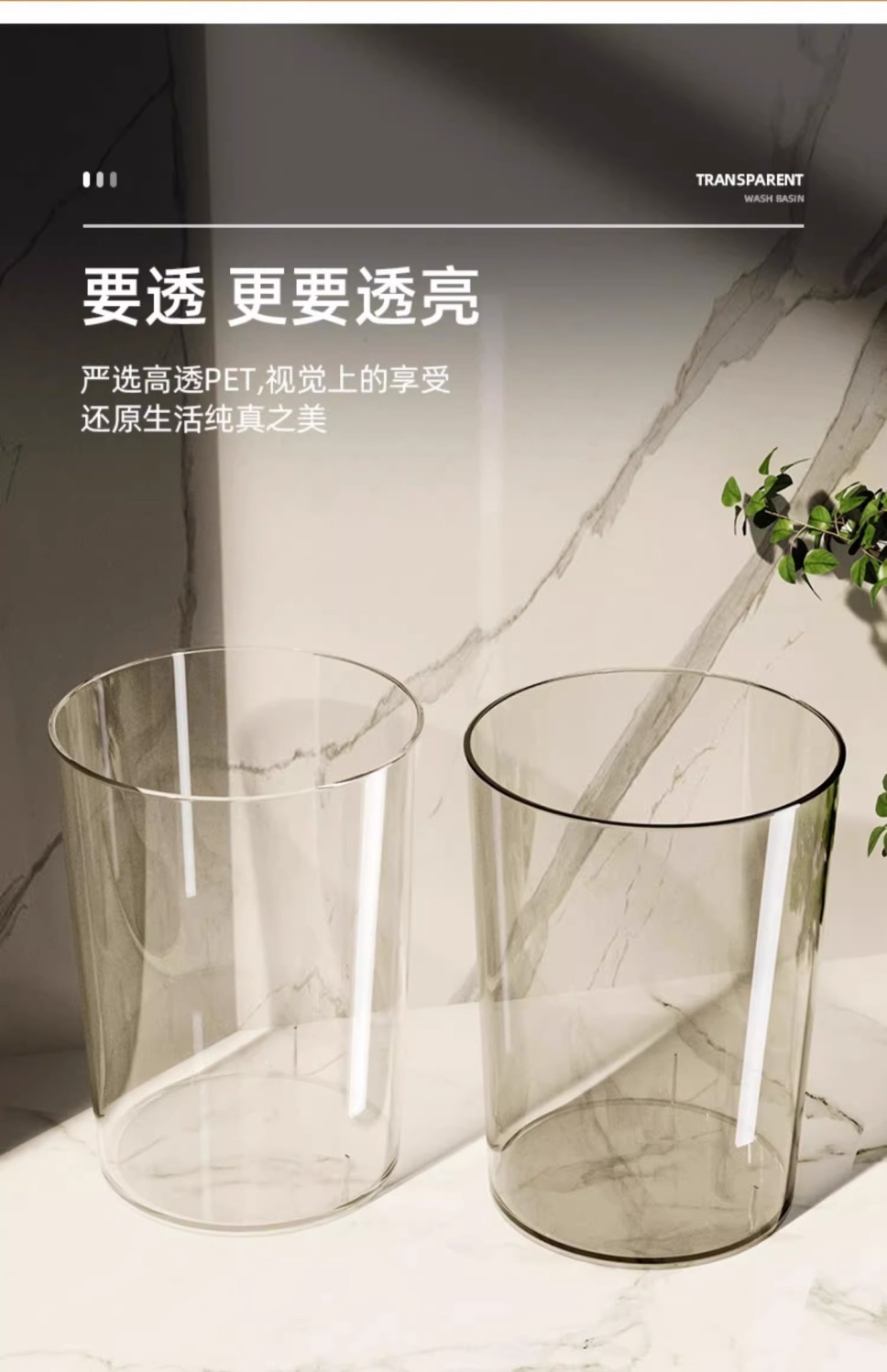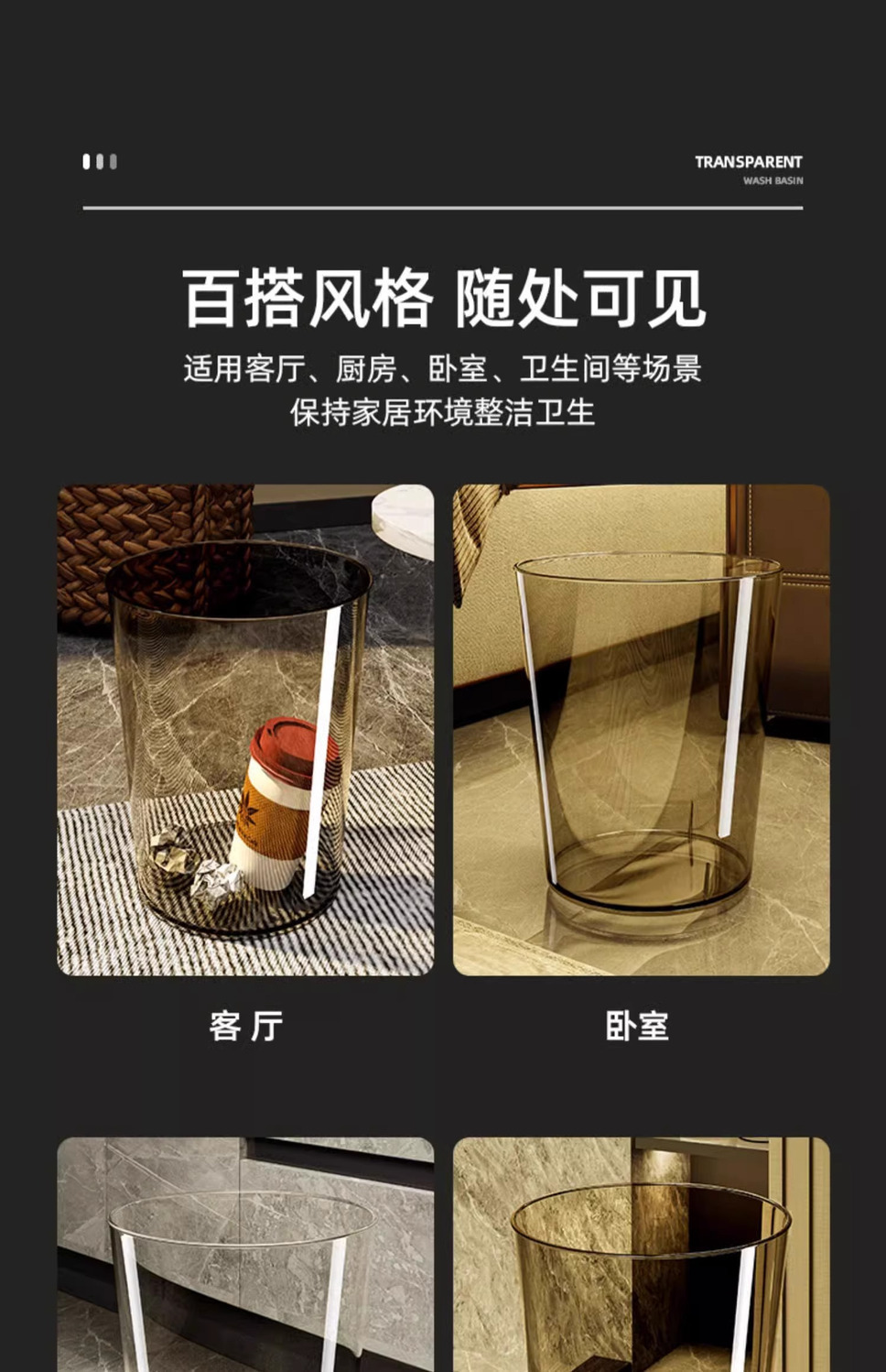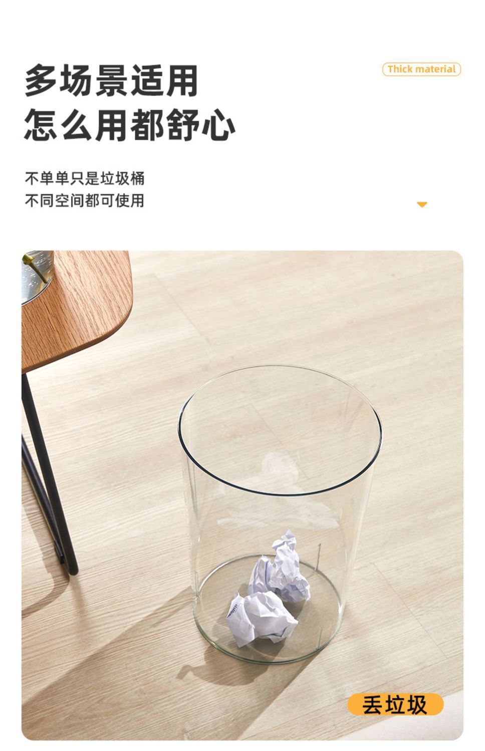 「北欧风!颜值派」垃圾桶客厅居家日用颜值亚克力透明厕所厨房创意大号办公室卧室收纳整理纸篓