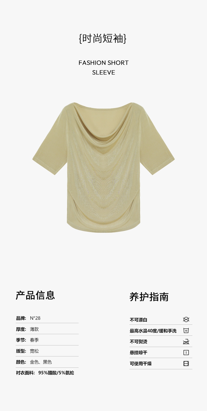 【破价】N°28 2025春季新款醋酸T恤 显瘦堆堆领时尚百搭设计感薄款上衣895141T354