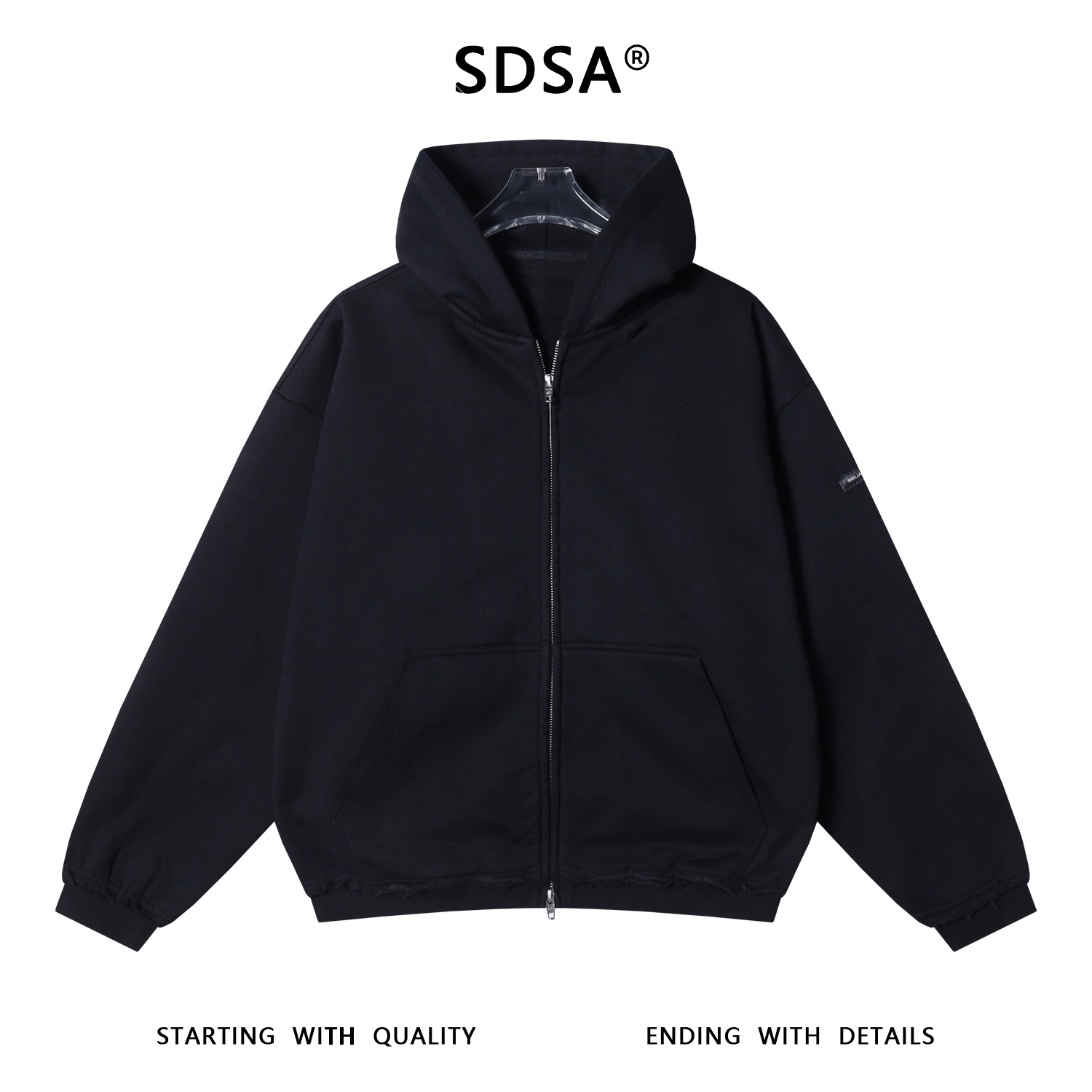 SDSA男士秋冬新款痞帅男装休闲纯色磨破拉链连帽卫衣百搭开衫外套