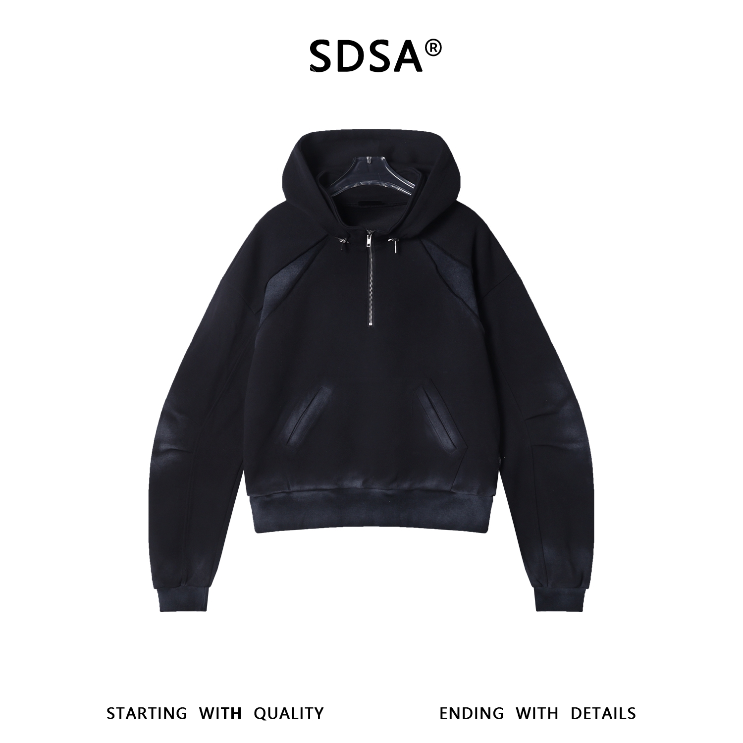 F7281SDSA男士秋冬新款痞帅男装复古重磅拼接可拆卸半拉链连帽卫衣百搭