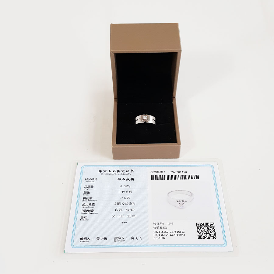 【天然正品】AU750白金时尚经典款0.118克拉钻石戒指16号(戒圈可改)280226NJM07
