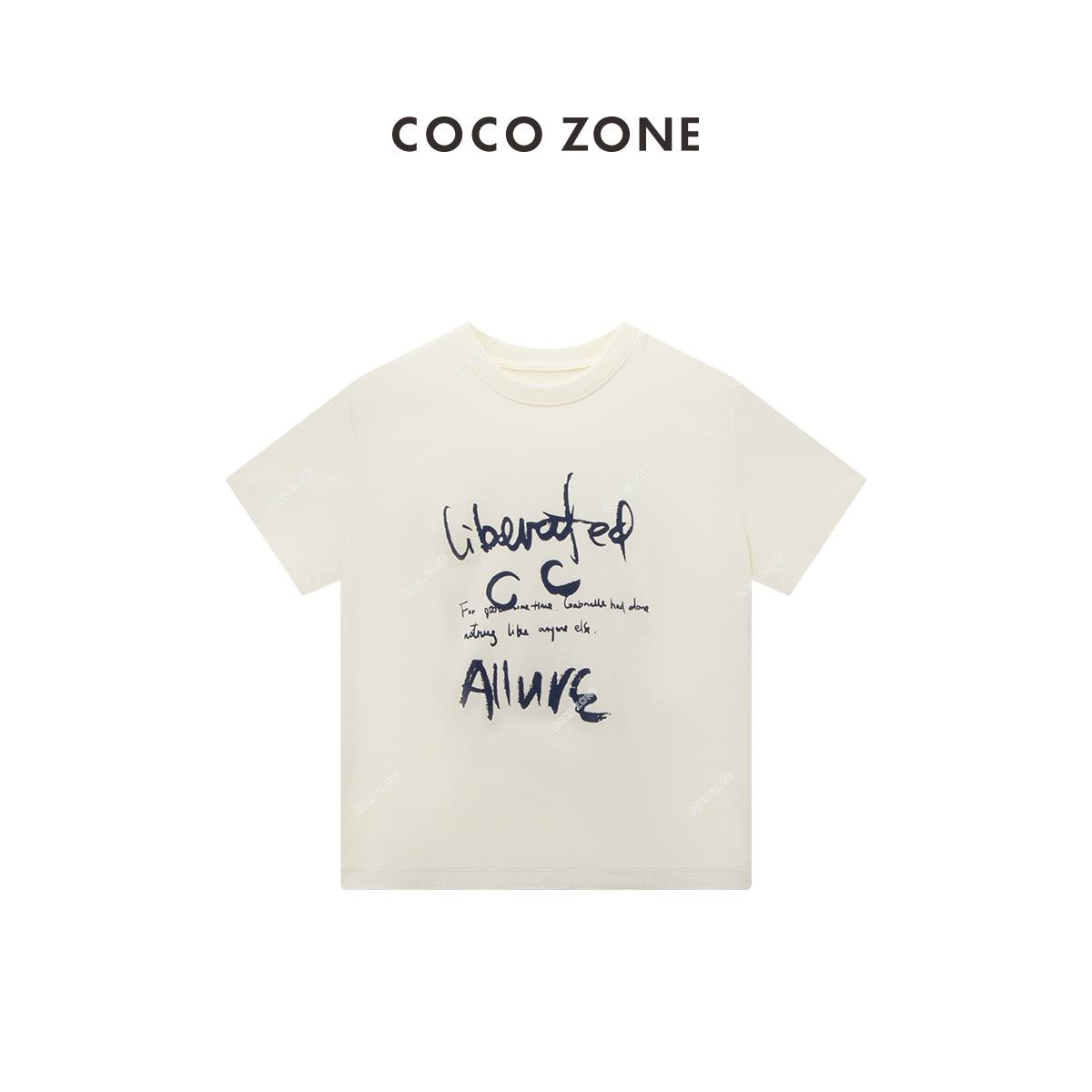 COCO ZONE"涂鸦T“夏季字母印花别致短袖T恤时尚圆领通勤休闲上衣CC2B0889