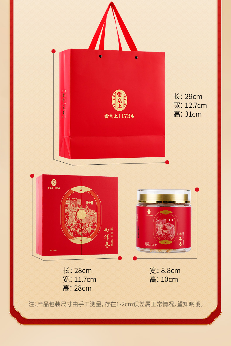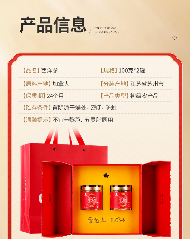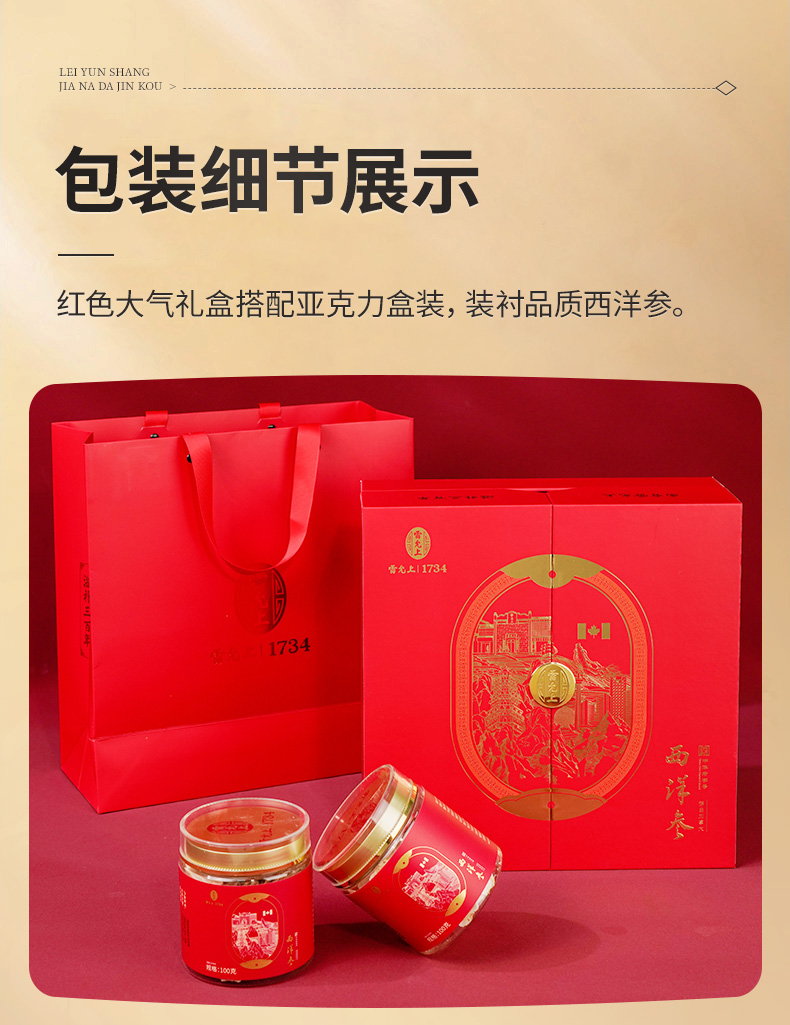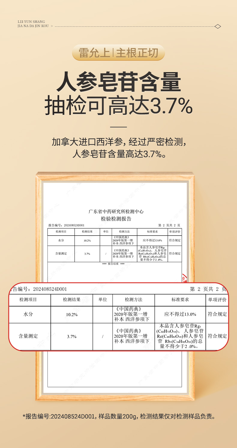 雷允上加拿大西洋参片200g(100g*2瓶)/盒 (2-3cm)