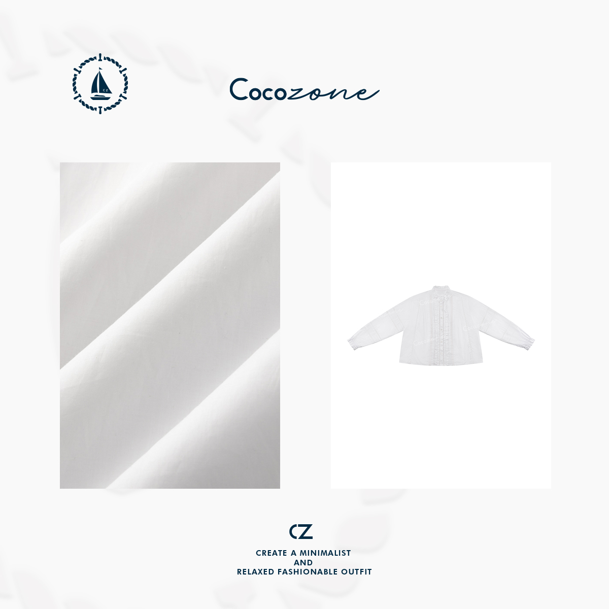 COCO ZONE 100棉高级感镂空立领单排扣衬衫ACD2A0264
