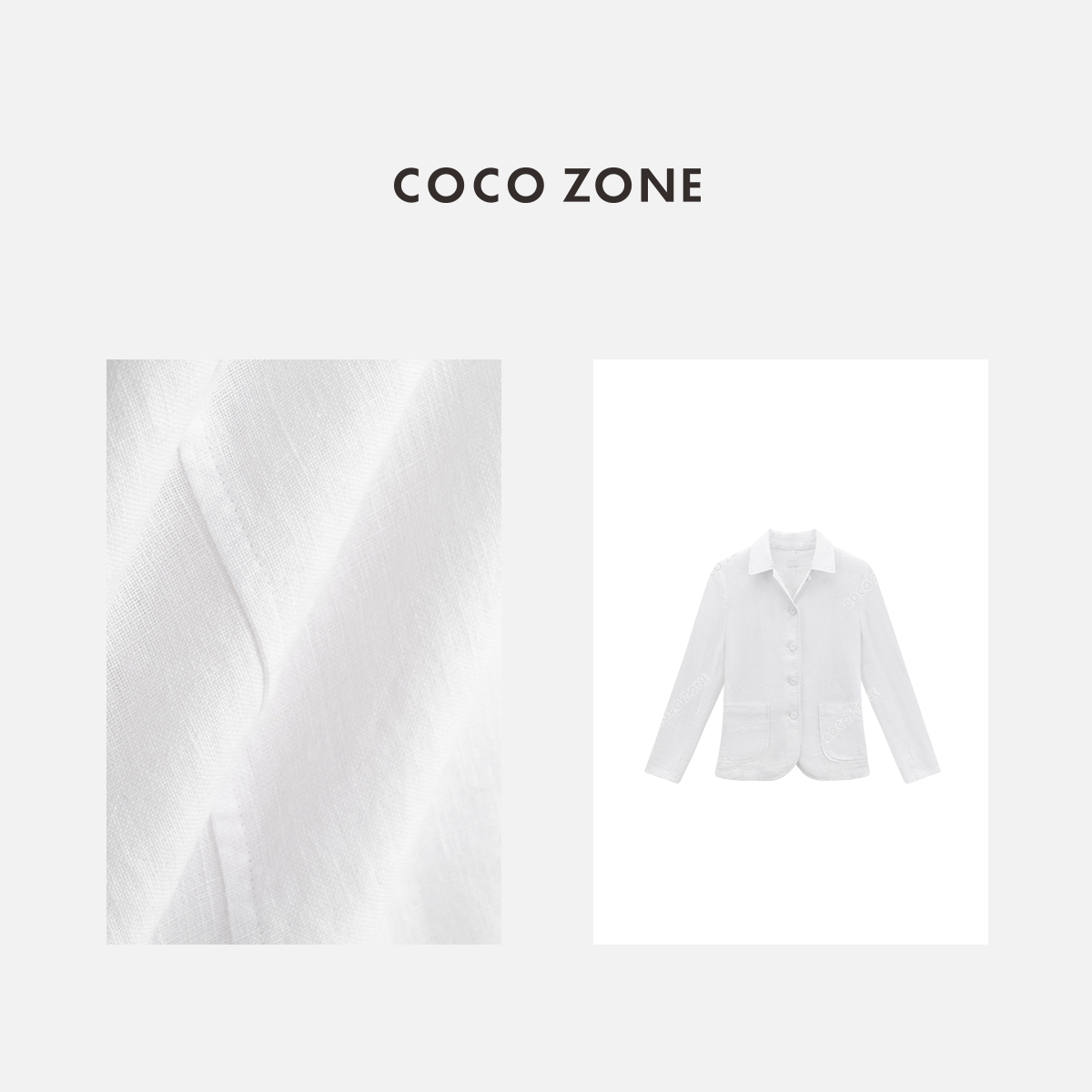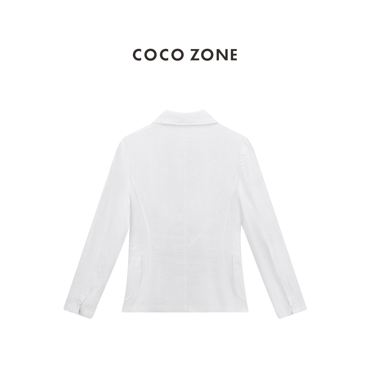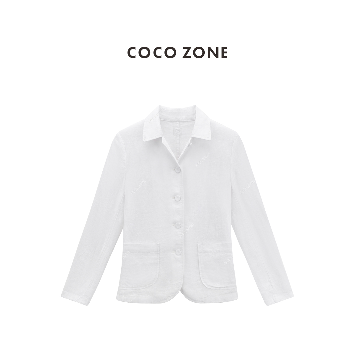 COCO ZONE 100亚麻翻领外套纯色单排扣上衣CC1B1493