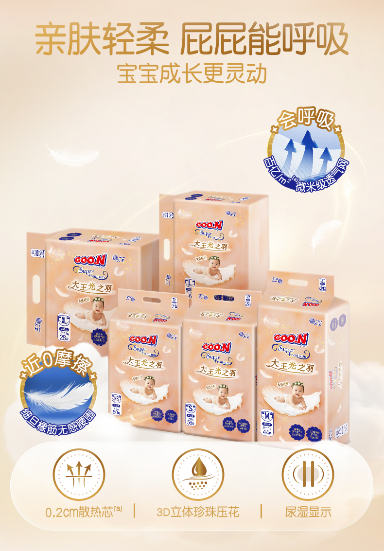 大王光之羽纸尿裤夏季薄款透气婴儿拉拉裤新生儿尿不湿宝宝尿布片