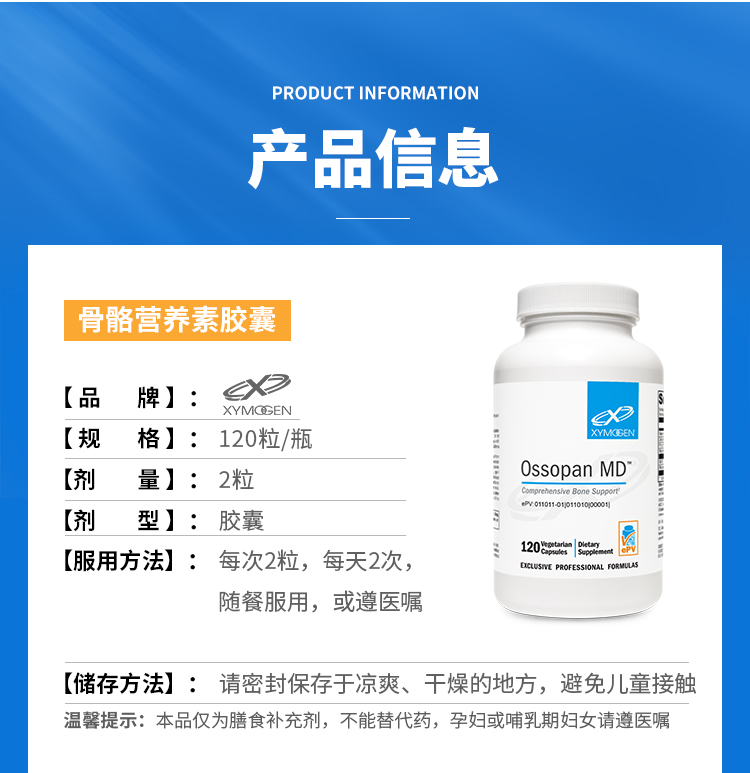 【效期至27年12月】骨骼营养素胶囊 XYMOGEN Ossopan MD 120粒/瓶